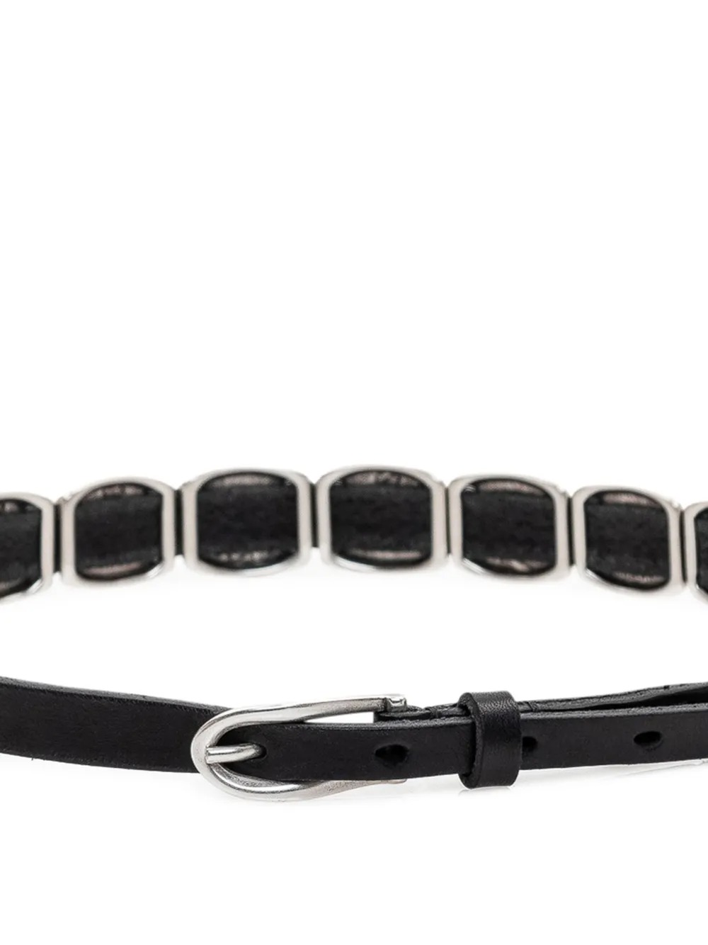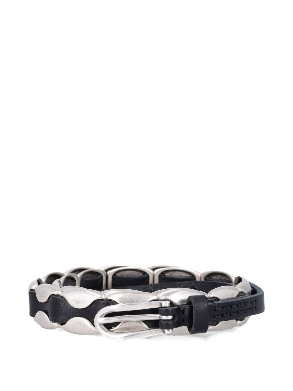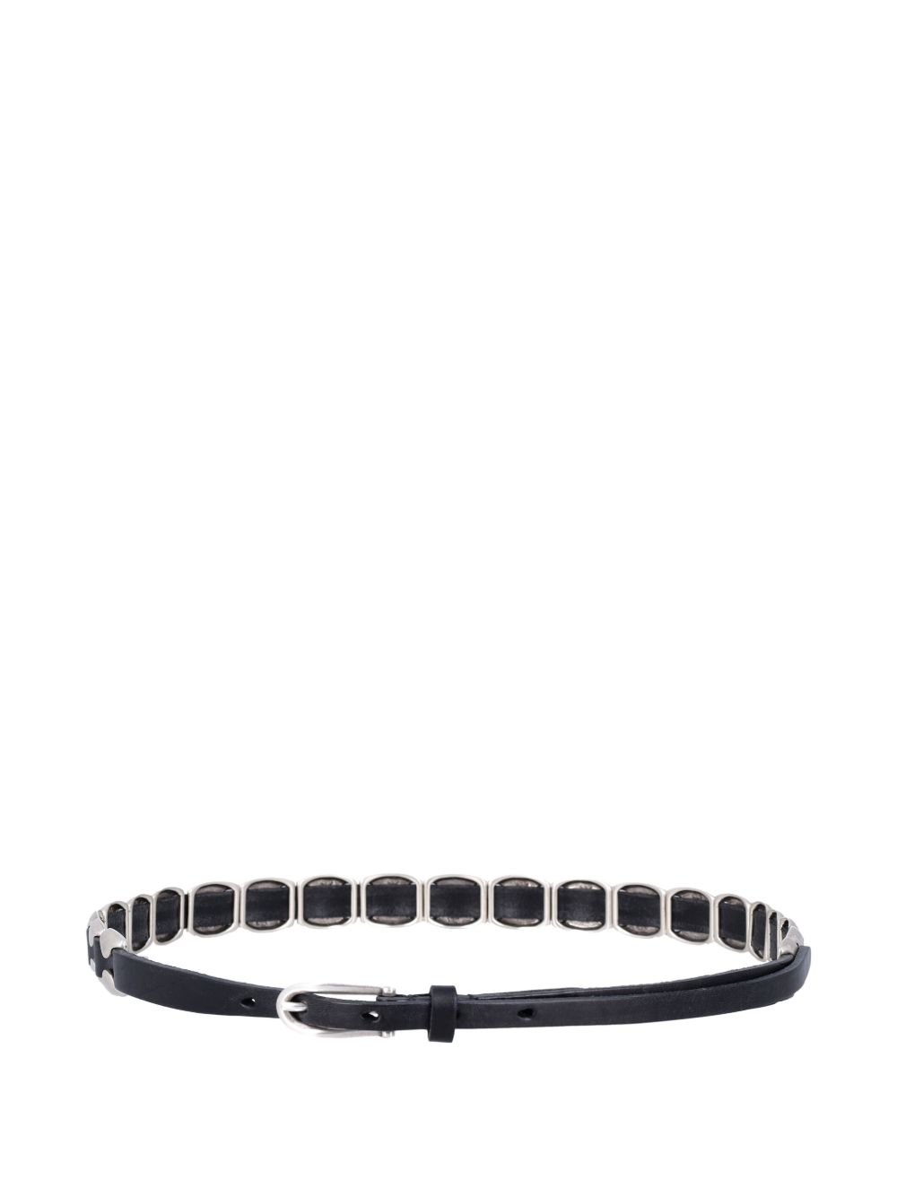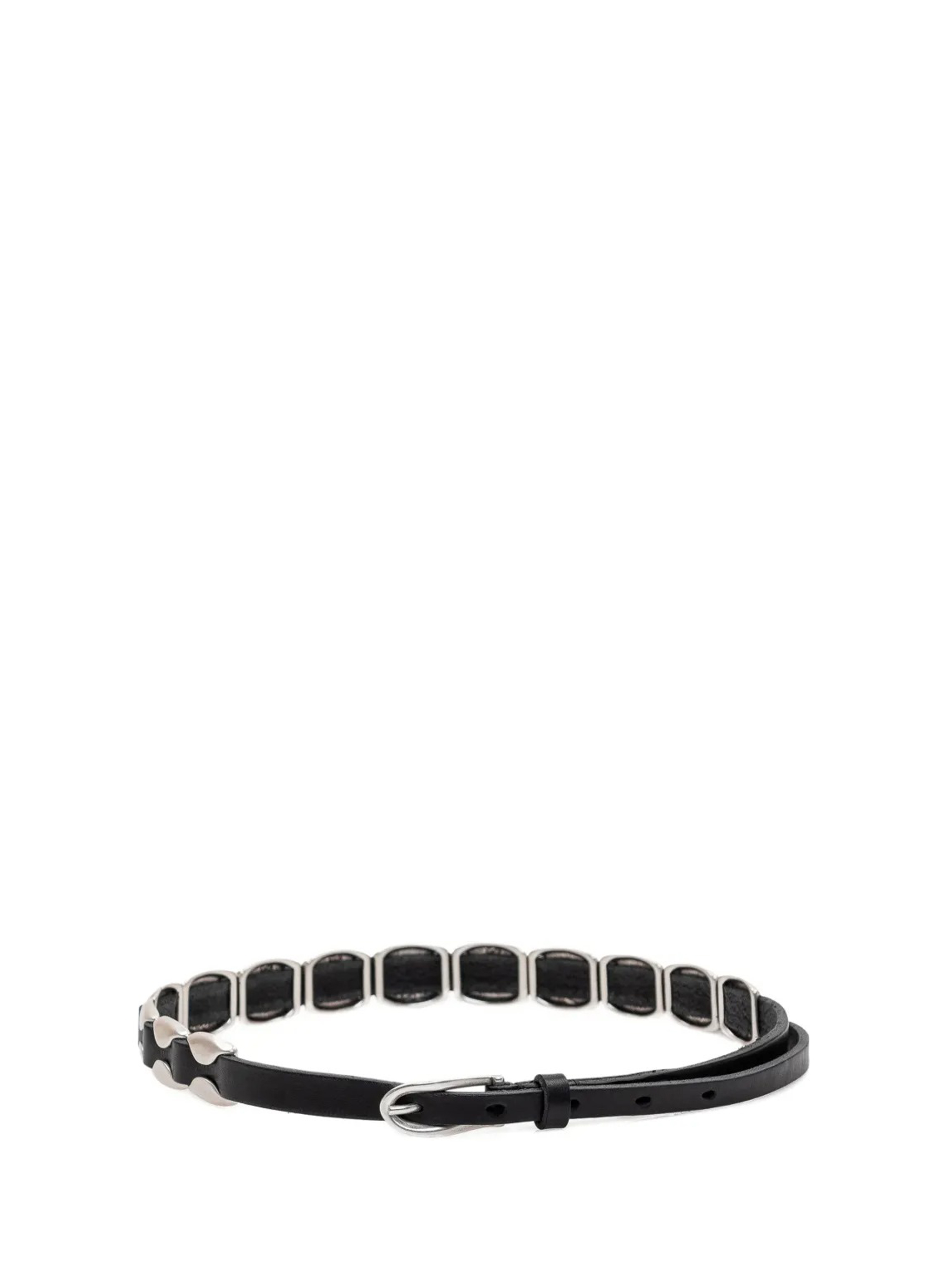 Cintura nera Bellow di Our Legacy in pelle con, dettagli color argento, decorazione con borchie e fibbia.