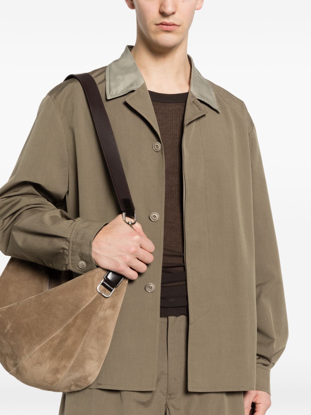 Giacca verde Pack Blazer di Our legacy in lana con cuciture tono su tono, colletto a contrasto, chiusura a bottoni, maniche lunghe e tasche a filetto.
