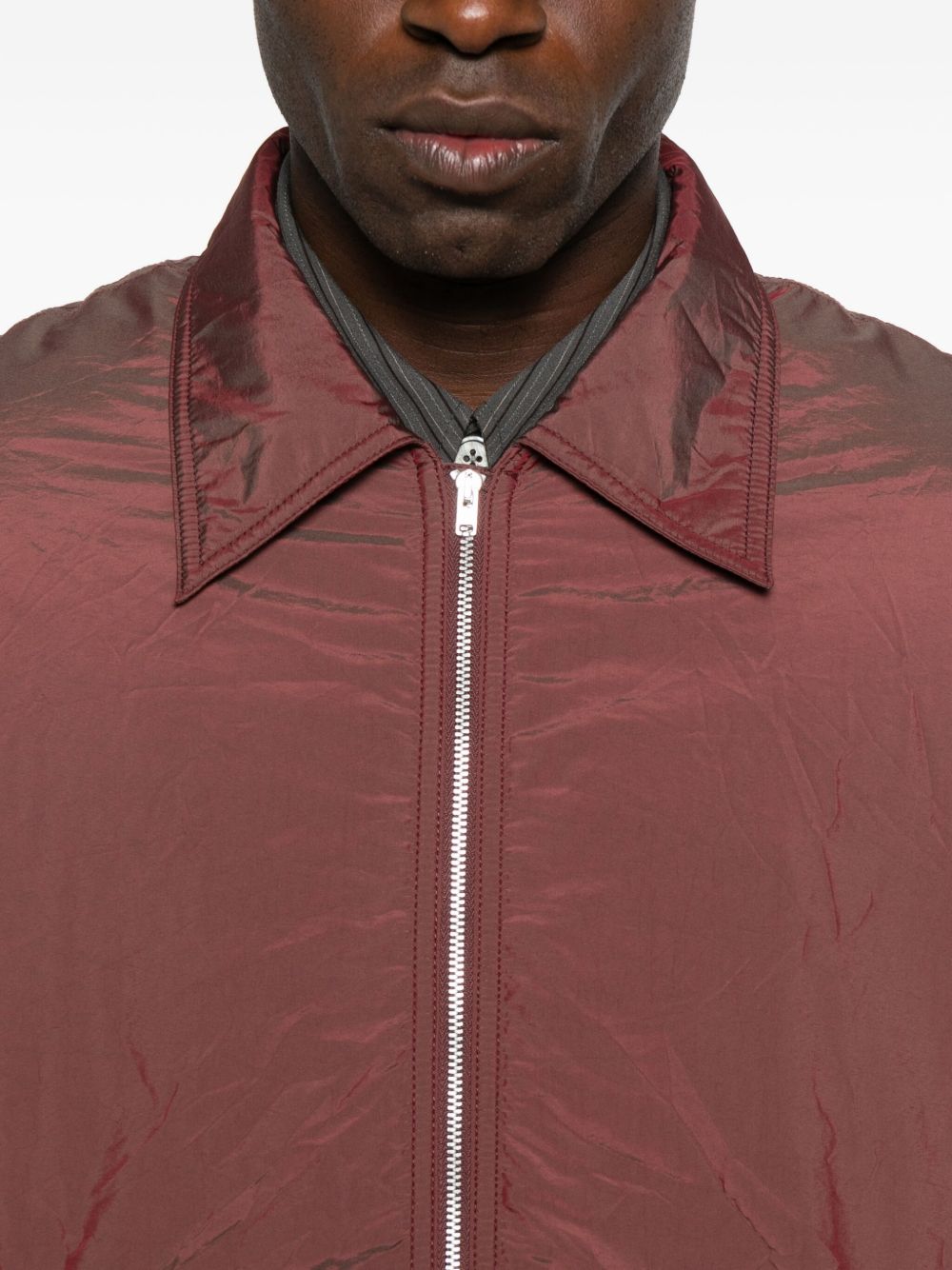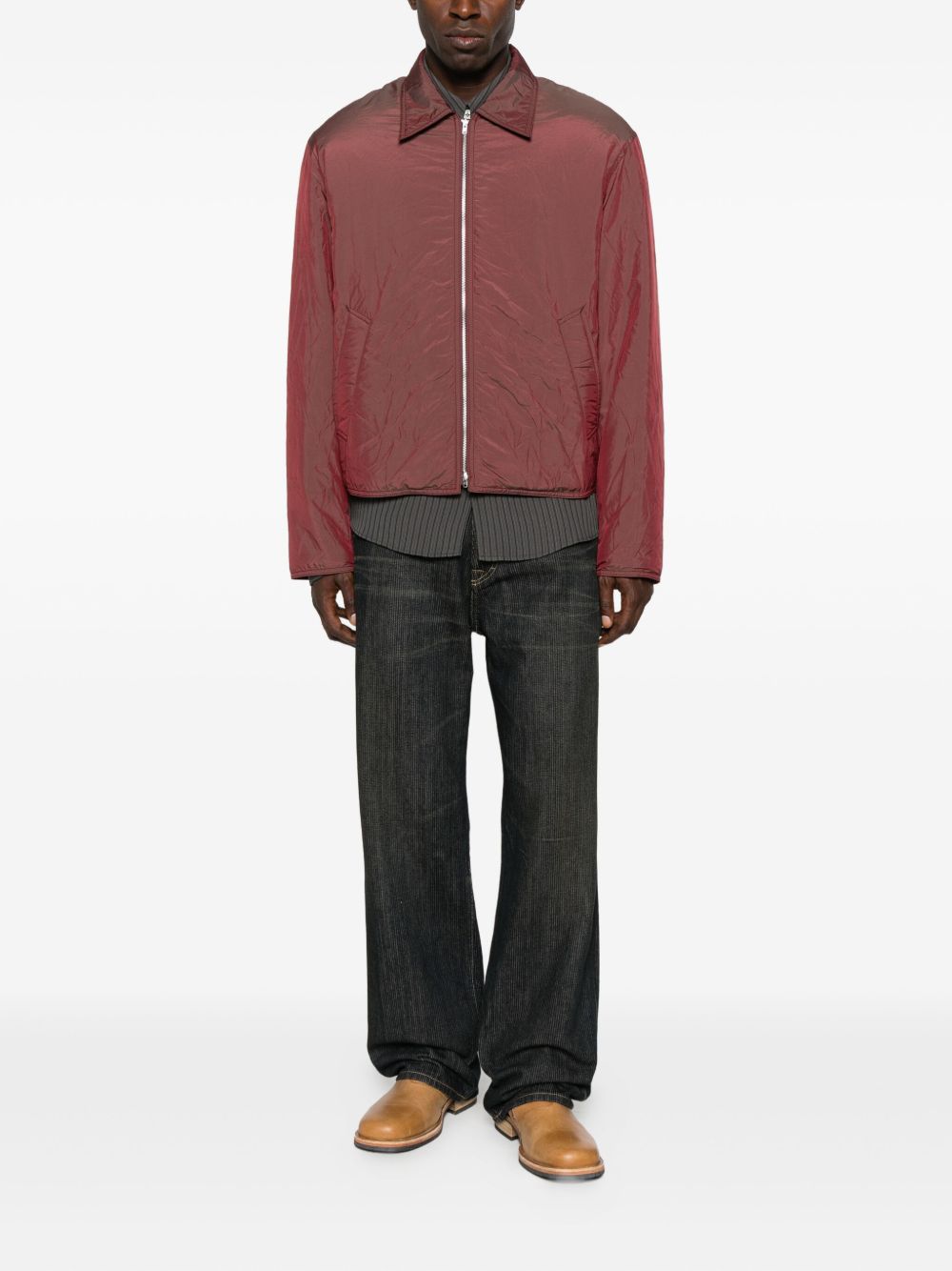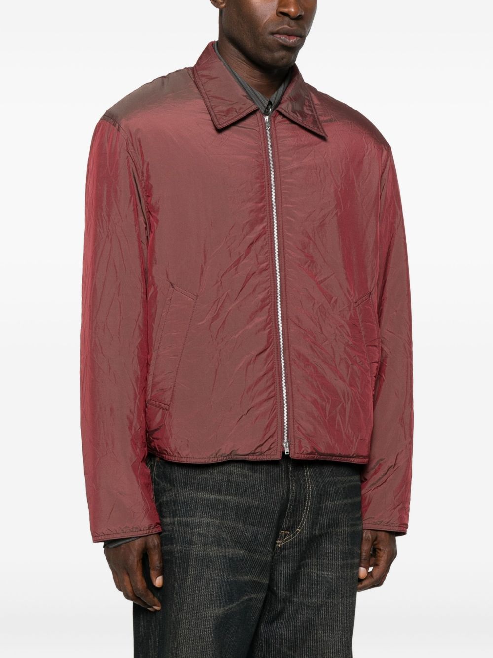 Giacca ciliegia Slight di our Legacy in poliammide con colletto classico, chiusura frontale con zip, tasche laterali a filetto e orlo dritto.