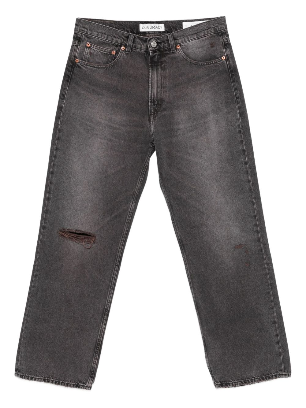 Jeans caffè Third Cut di Our Legacy in cotone con vita con passanti, chiusura vfrontale con bottone, design 5 tasche e orlo dritto.