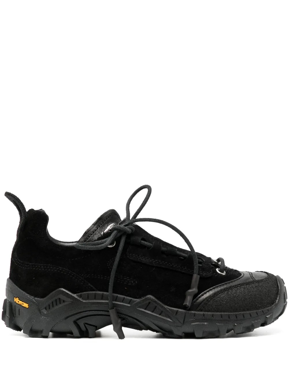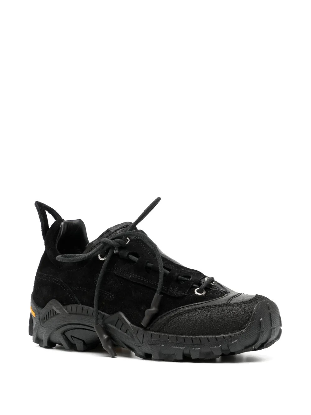 Sneakers nere Gabe di Our Legacy in pelle con design a inserti, cuciture tono su tono, punta tonda, chiusura frontale con lacci, dettaglio con rivetti, linguetta sul tallone, soletta con logo e suola Vibram®.
