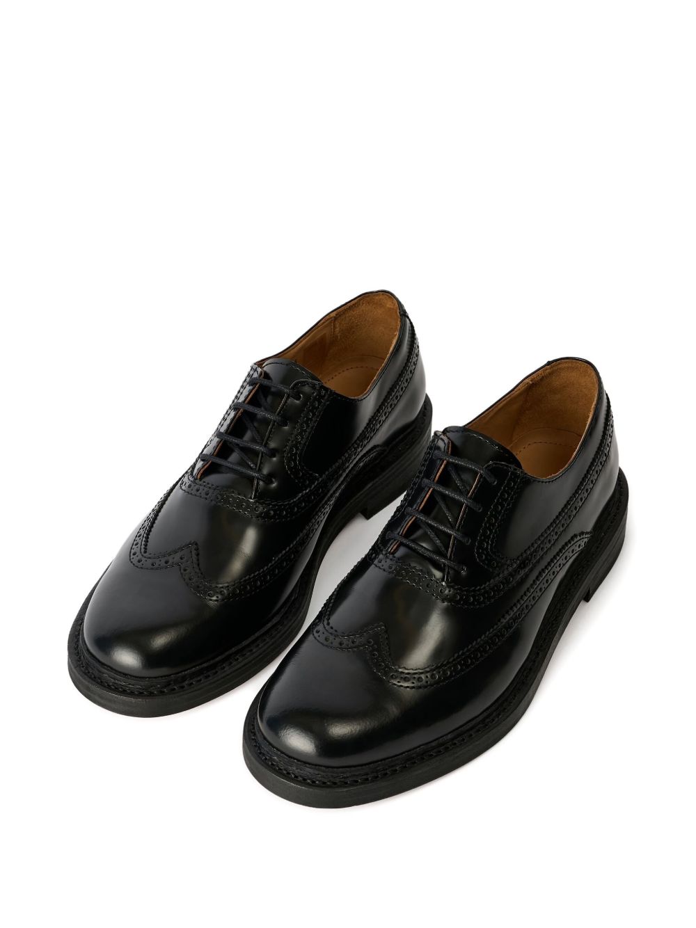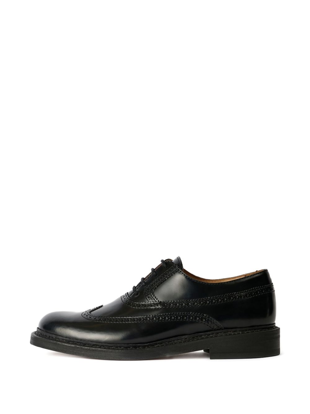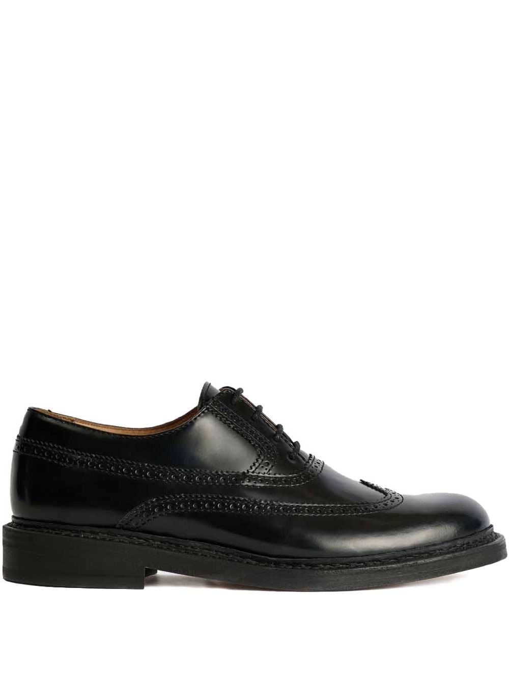 Scarpe stringate nere Brogue Parade in pelle con punta tonda, chiusura frontale con lacci, struttura con cucitura norvegese, suola in cuoio e tacco laminato.