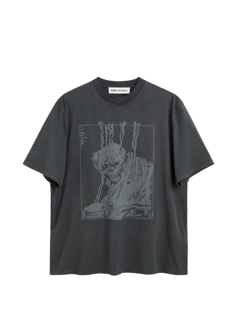 T-shirt grigia di Our Legacy in cotone con girocollo, manica corta, stampa frontale e posteriore, box fit e orlo dritto.