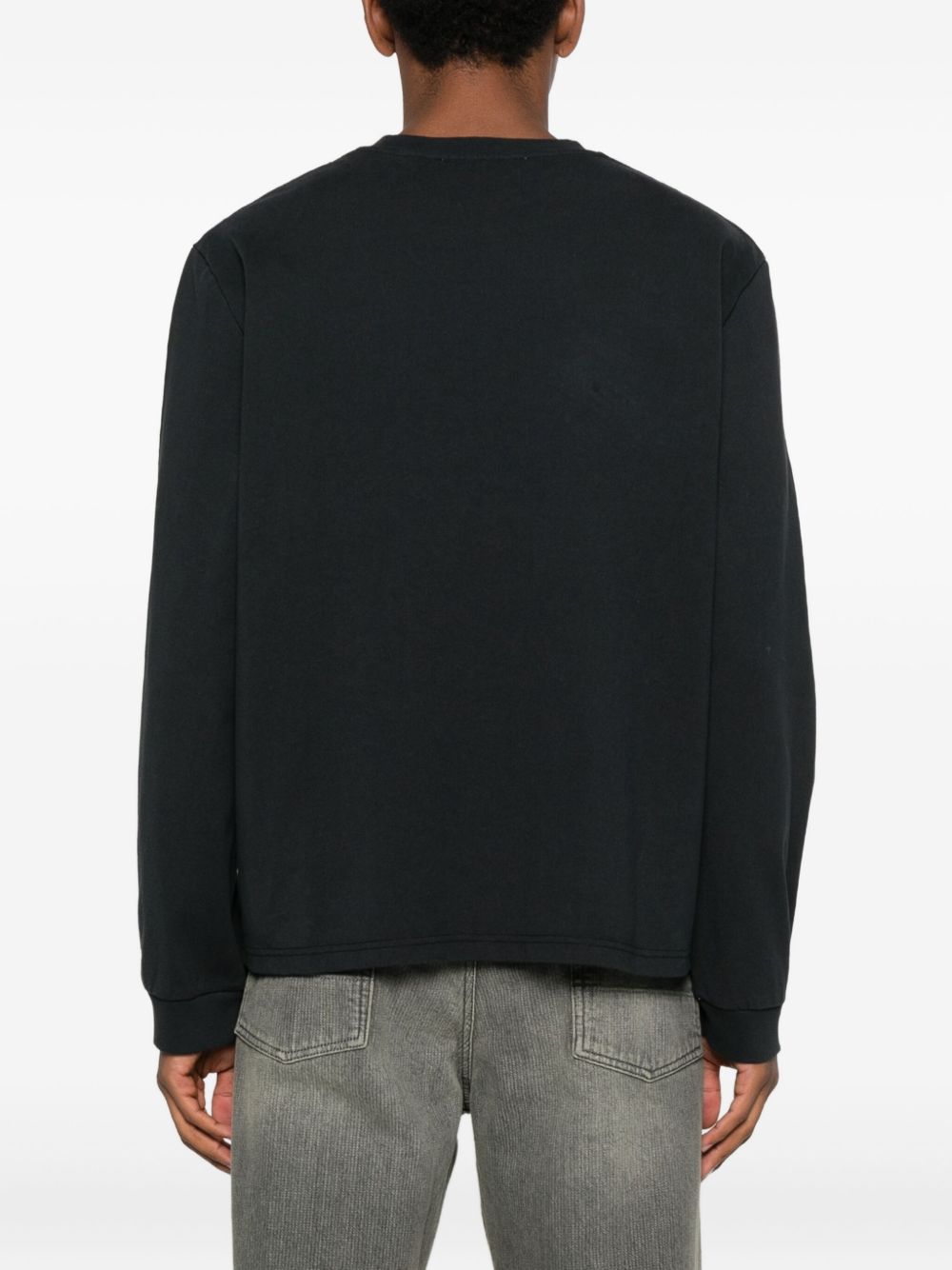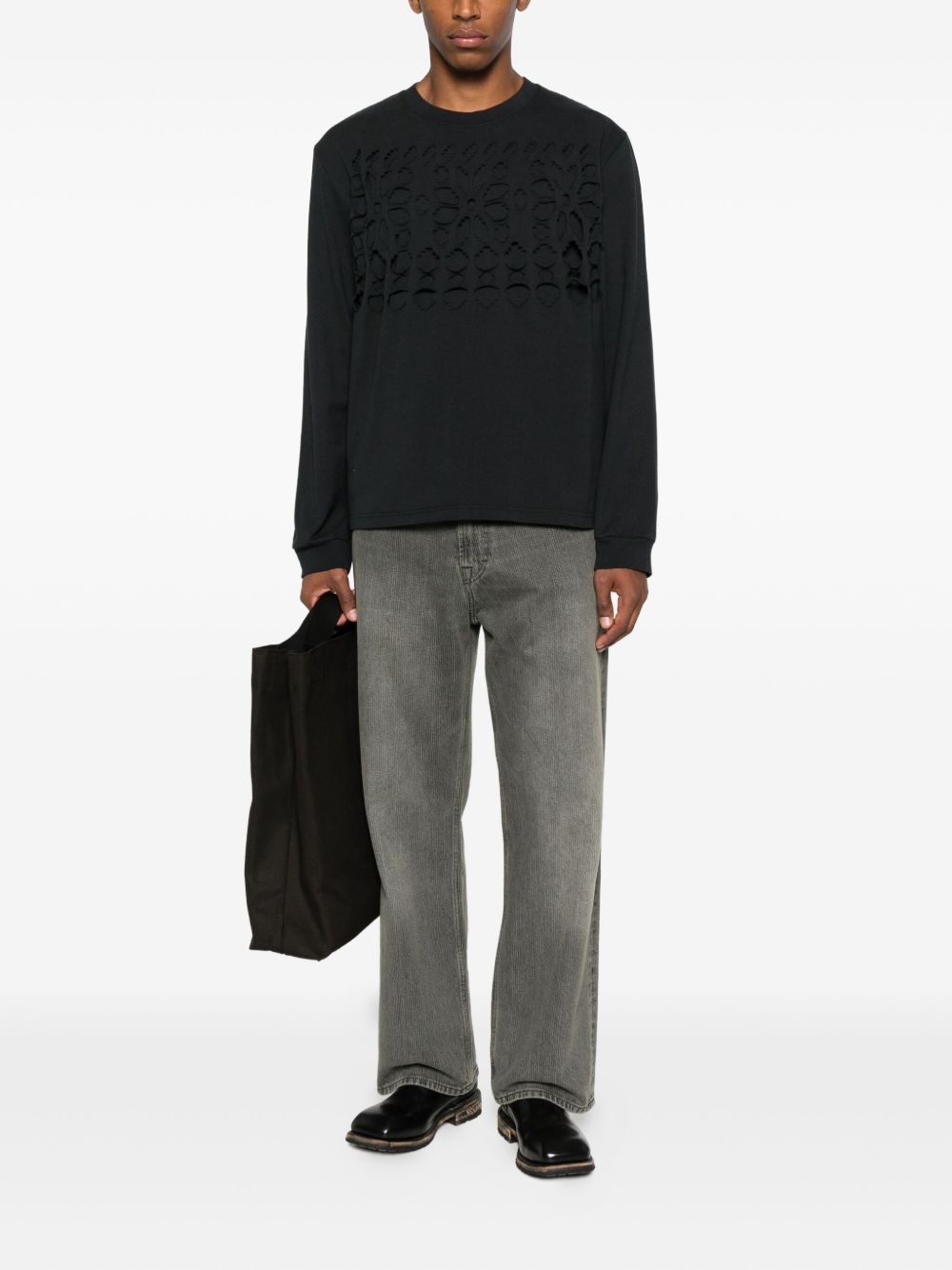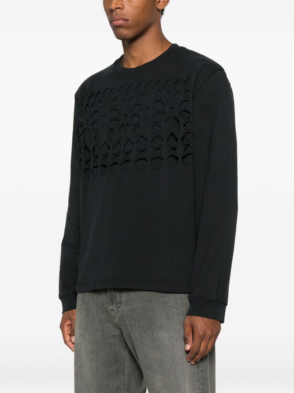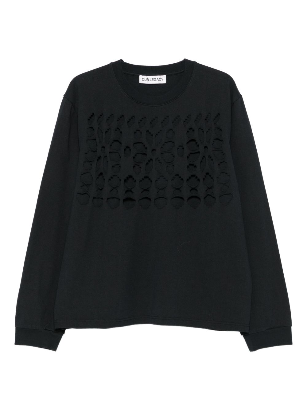 T-shirt nera Tour di Our Legacy in cotone con girocollo, manica lunga, dettaglio traforato e orlo dritto.