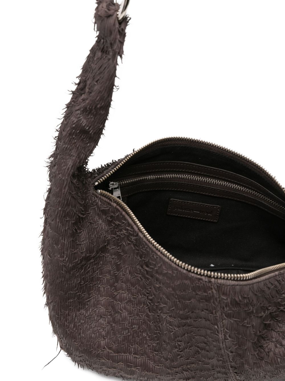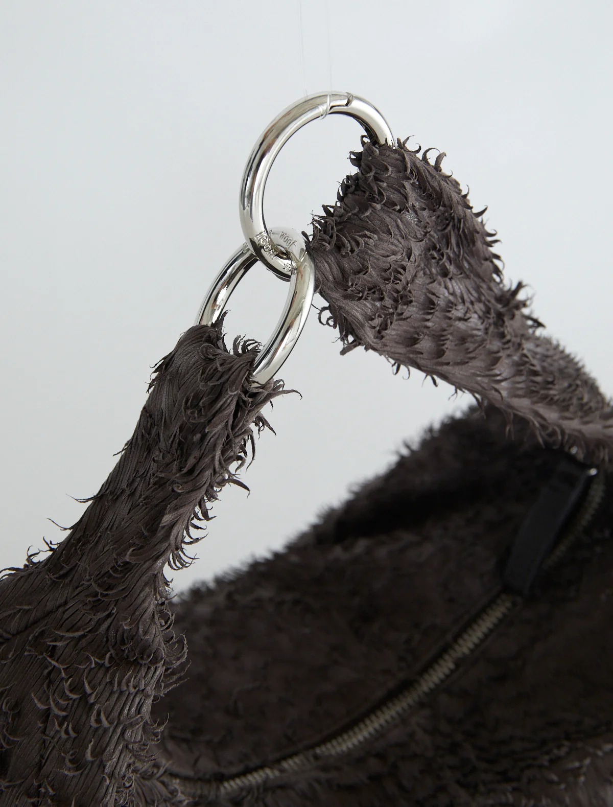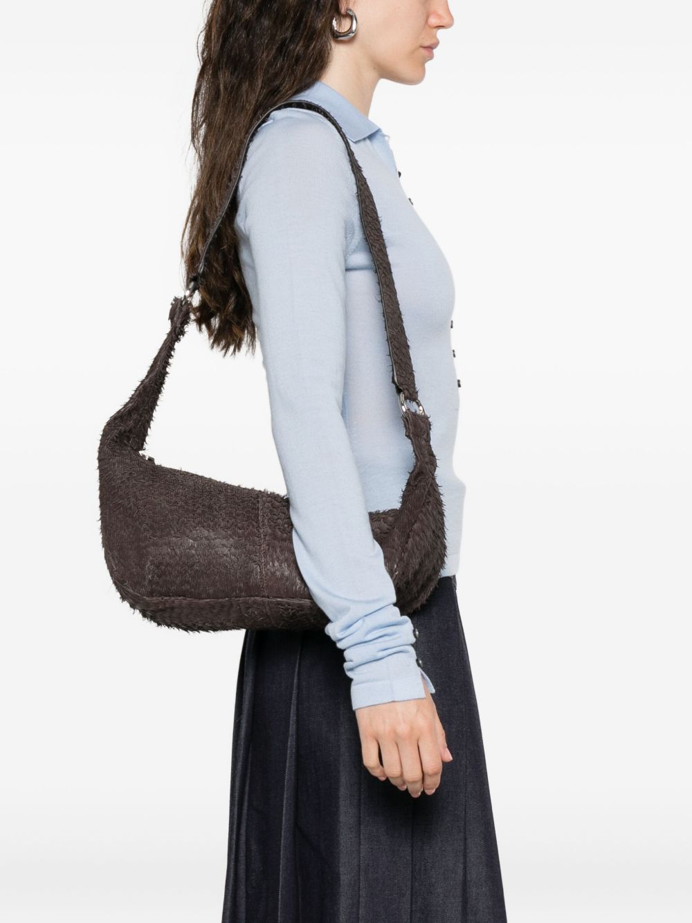 Borsa marrone Mini Dry di paloma Wool in pelle con tracolla allungata dettaglio anelli e chiusura con zip