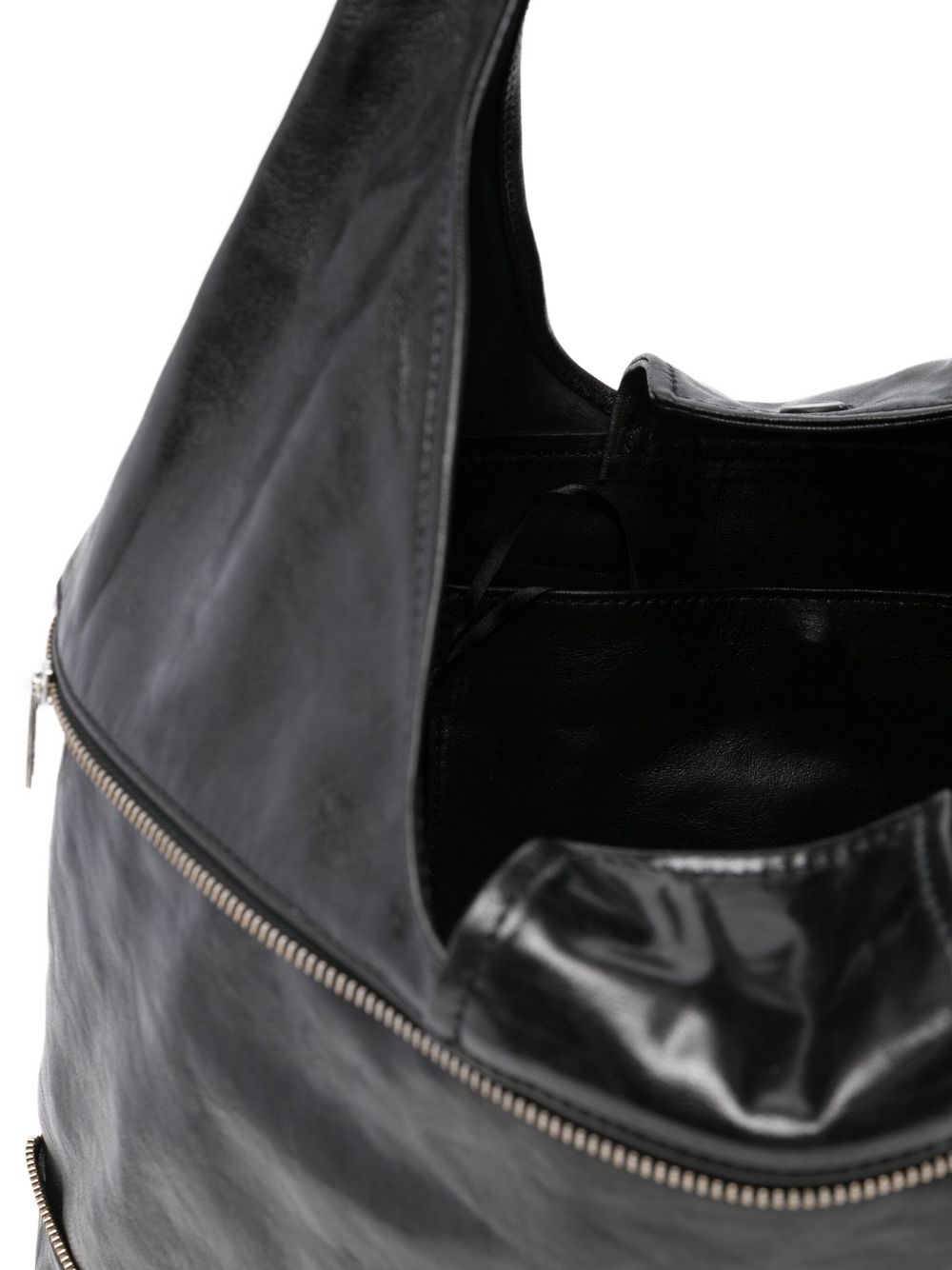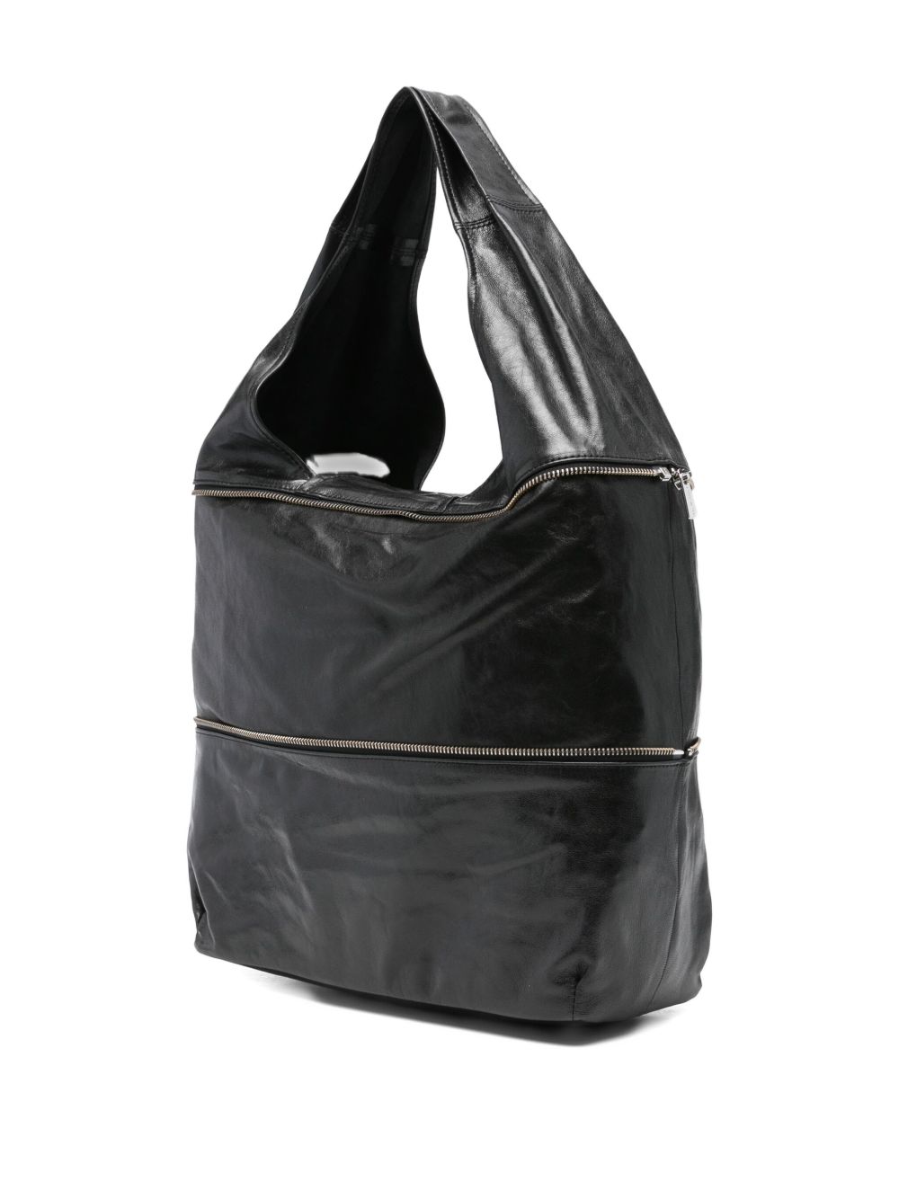 Borsa nera Riba Zip di Paloma Wool in pelle con tracolla a secchiello, sfoderata,dettaglio zip e con tasca interna.
