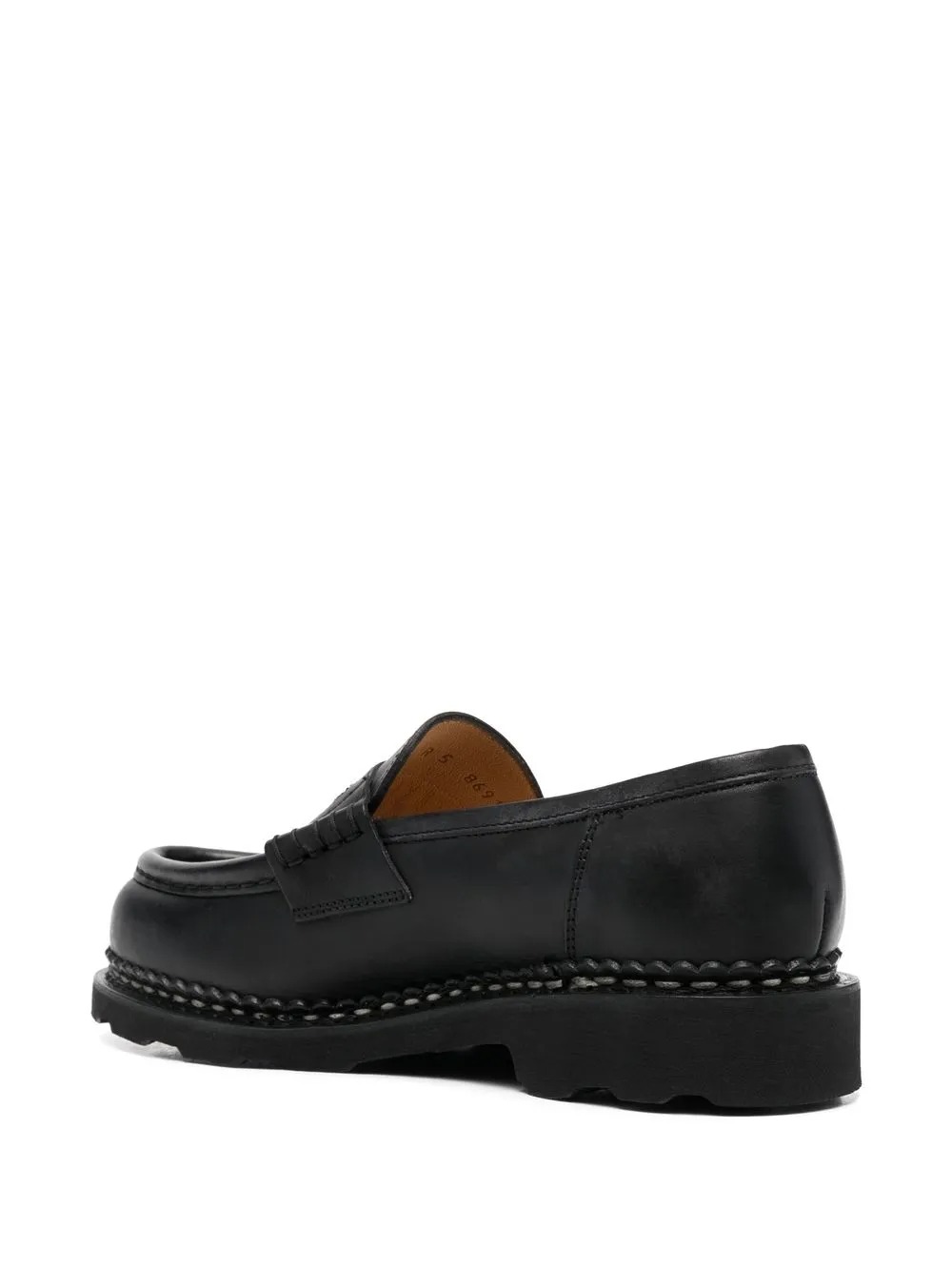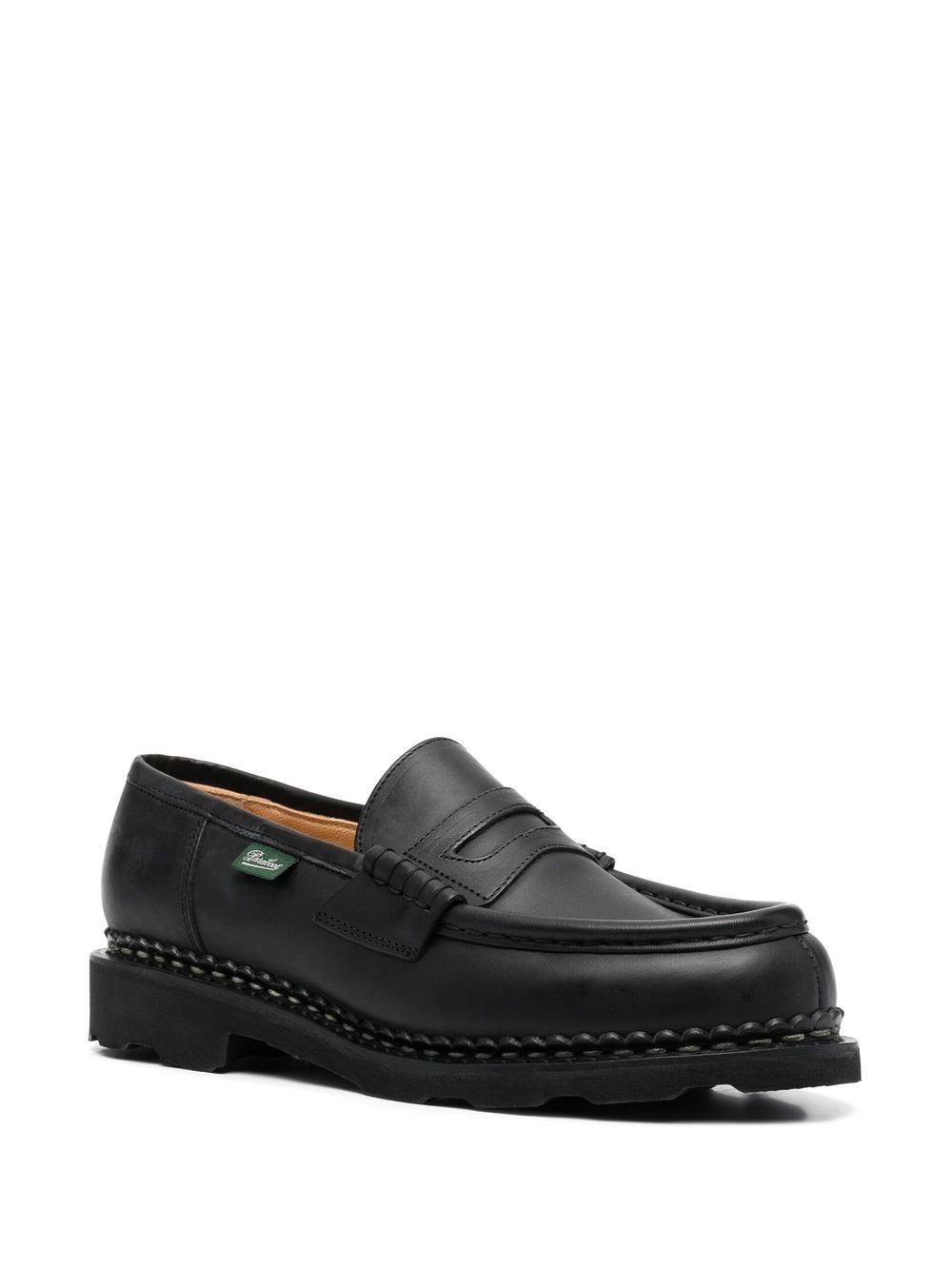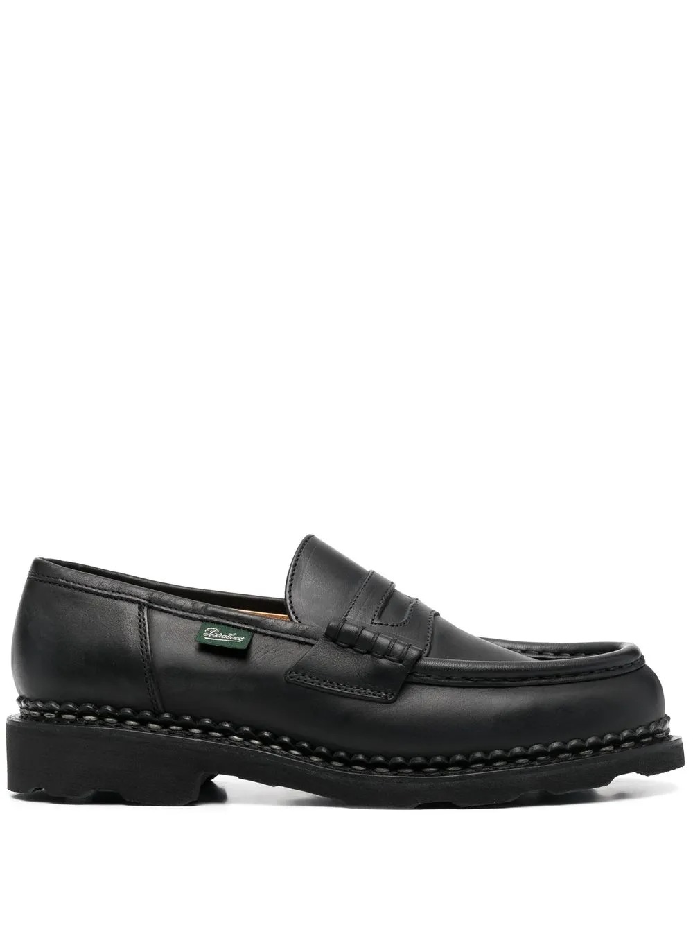 Mocassino nero Orsay di Paraboot in pelle con mini targhetta con logo, dettaglio cinghia, soletta in pelle con logo, punta smussata, design senza aperture e suola piatta in gomma.
