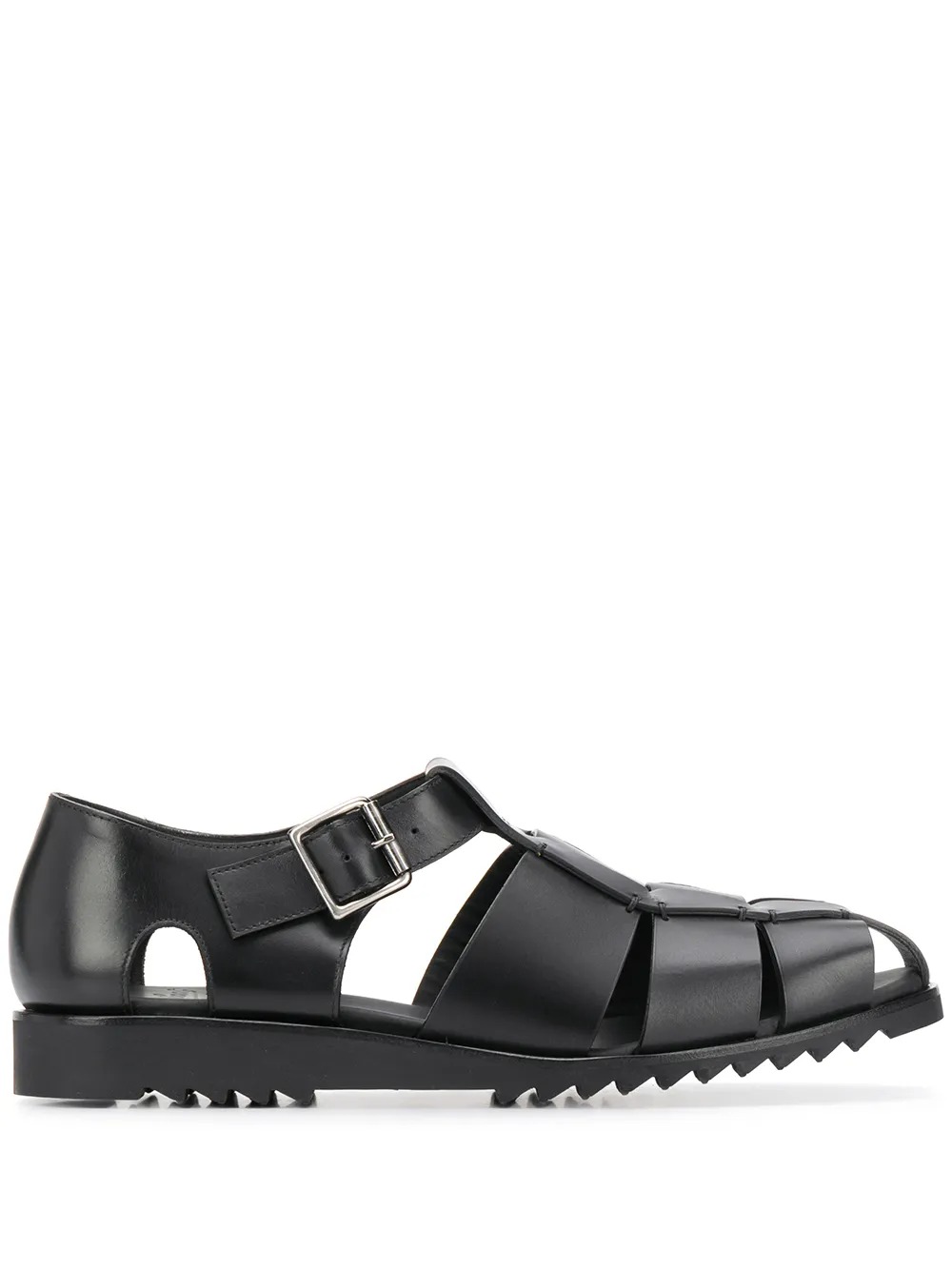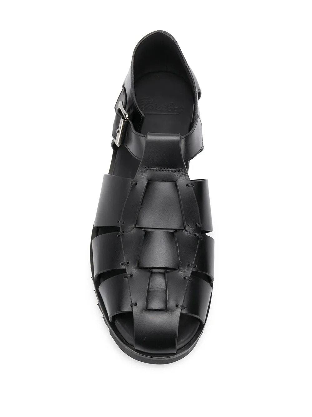 Sandali neri Pacific di Paraboot in pelle con chiusura con fibbia laterale, cuciture tono su tono e suola in gomma.