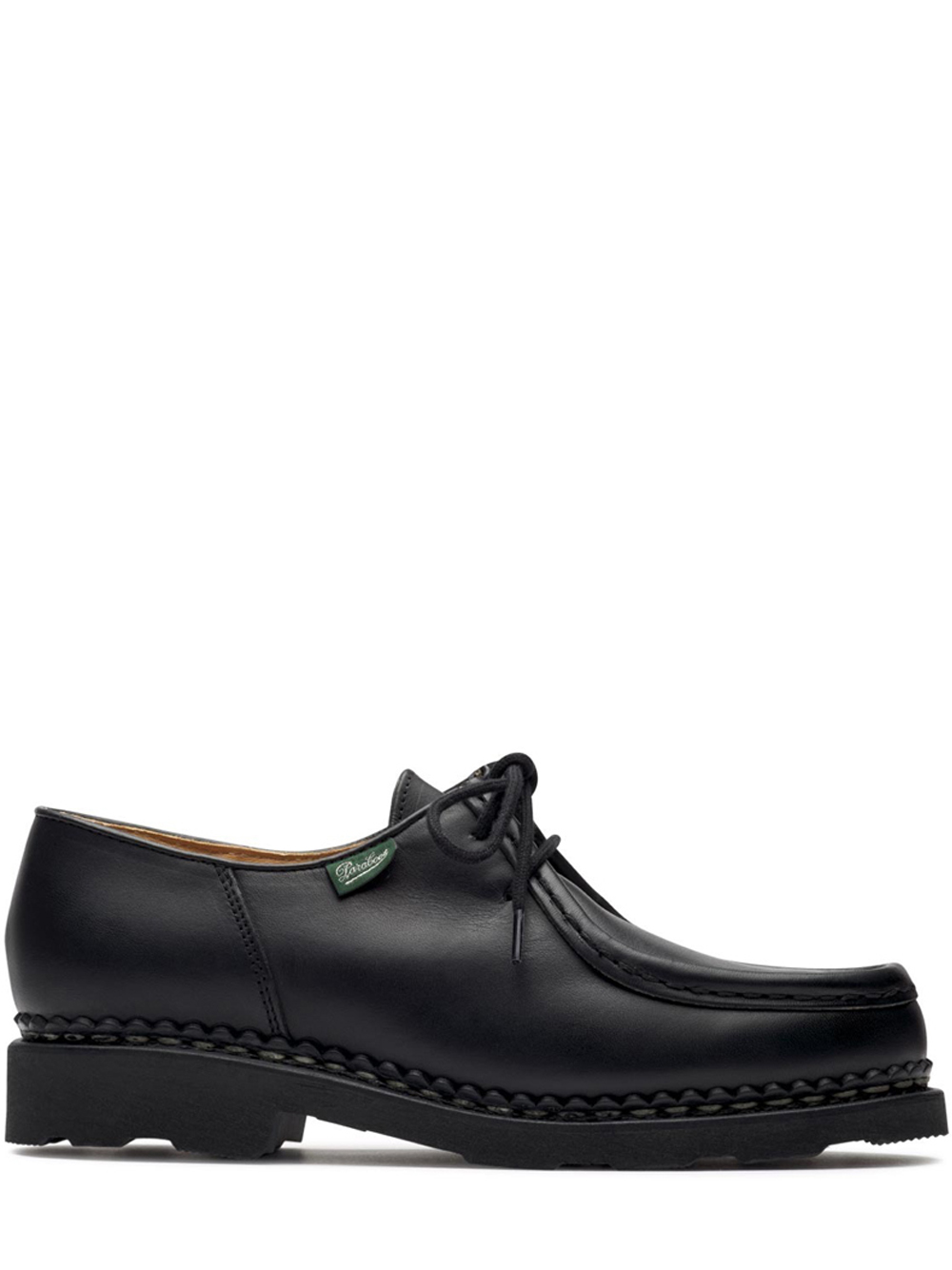 Scarpe stringate nere Michael di Paraboot in pelle con punta tonda, chiusura frontale con lacci e suola suola dentellata in gomma.