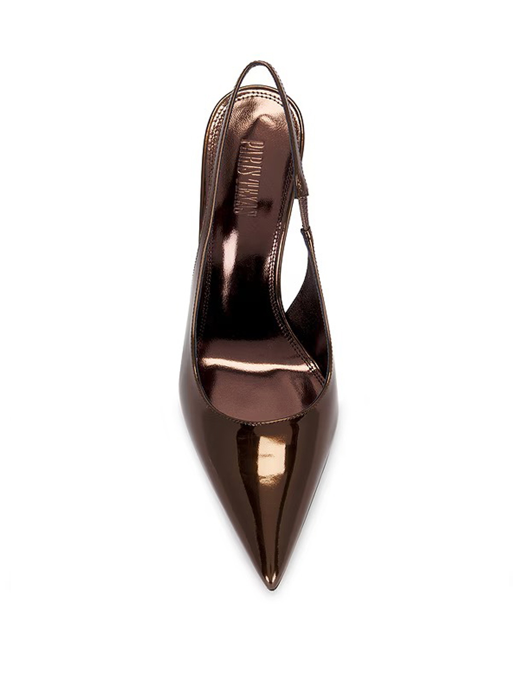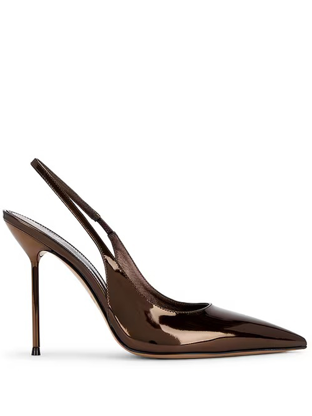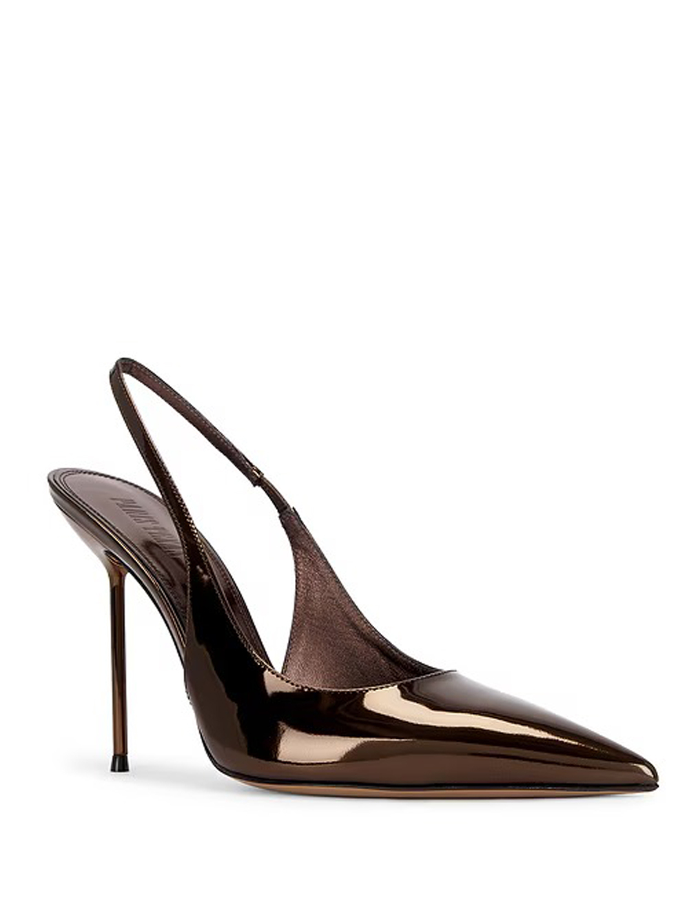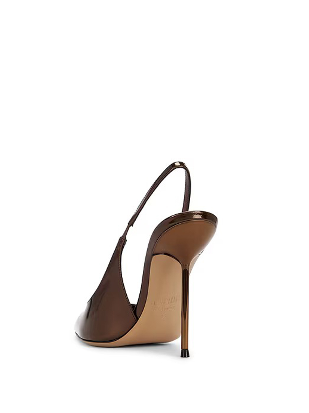 Sandali ebano Lidia Slingbacke di Paris Texas in pelle design a punta, cinturino posteriore e tacco a stiletto.