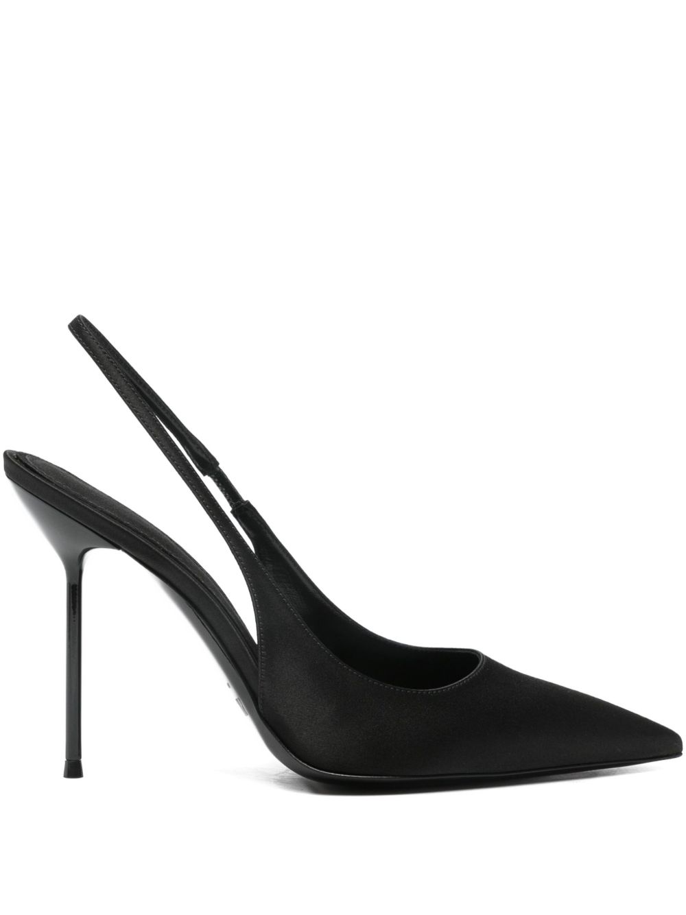 Sandali neri Lidia Slingbacke di Paris Texas in viscosa design a punta, cinturino posteriore e tacco a stiletto.
