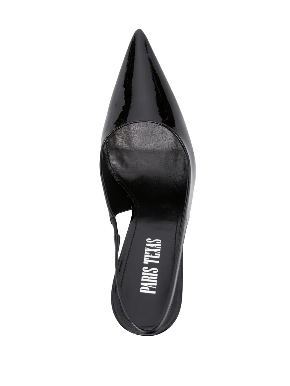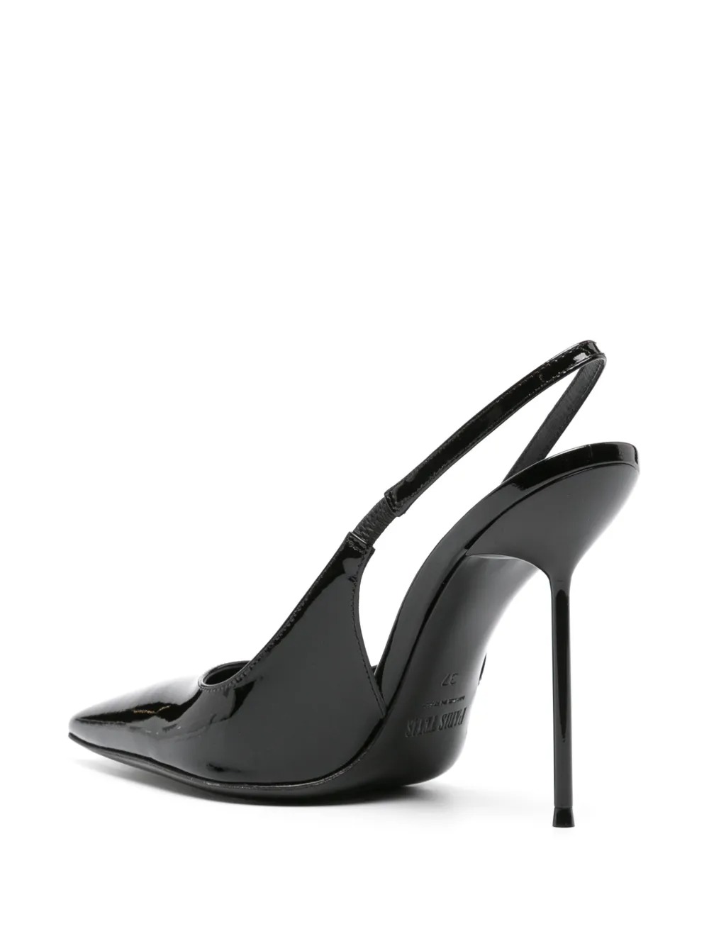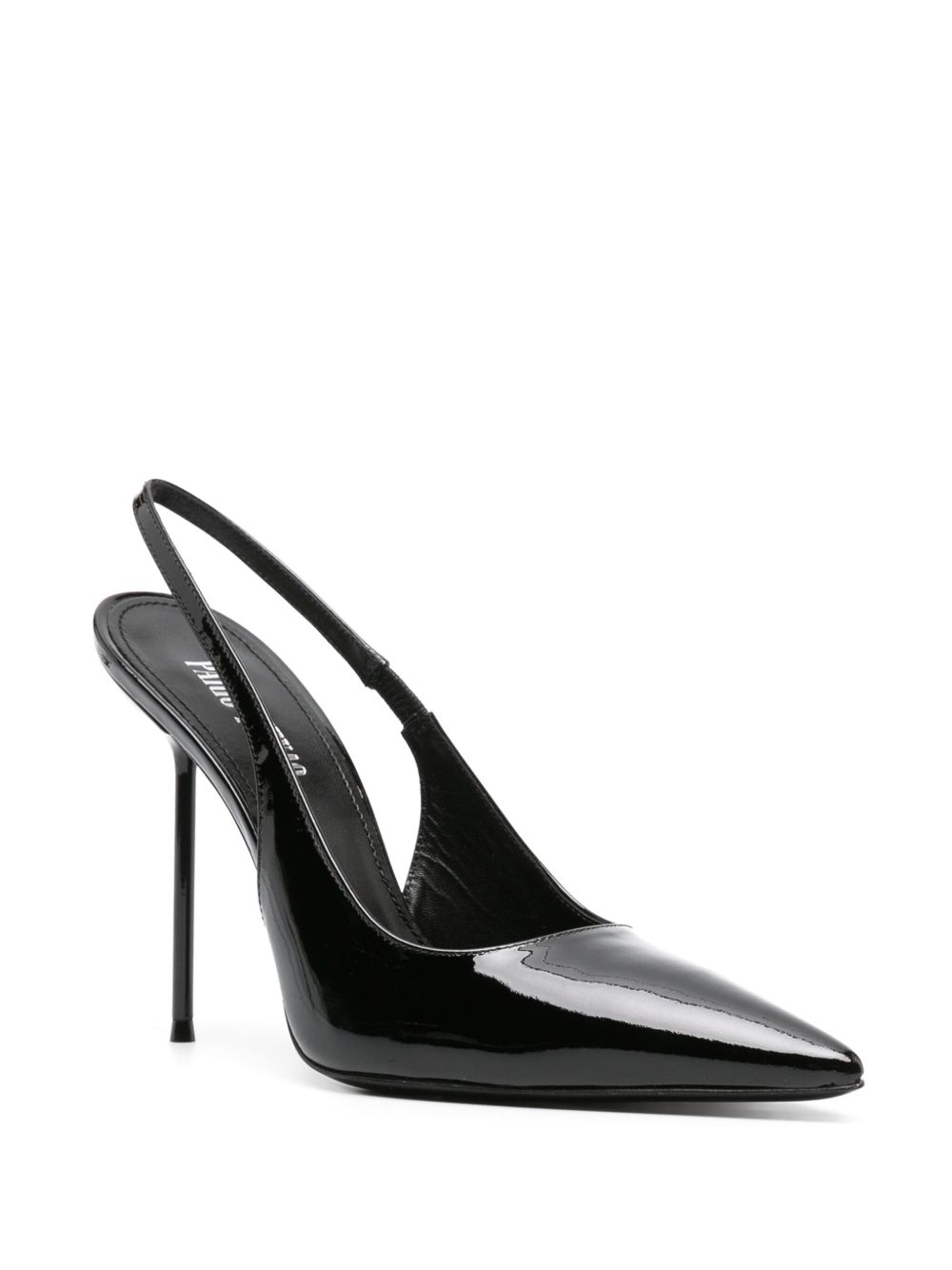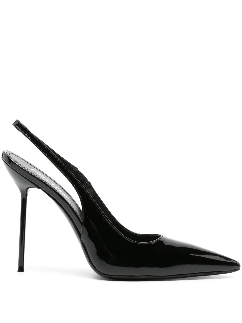 Sandali neri Lidia Slingbacke di Paris Texas in pelle design a punta, cinturino posteriore e tacco a stiletto.