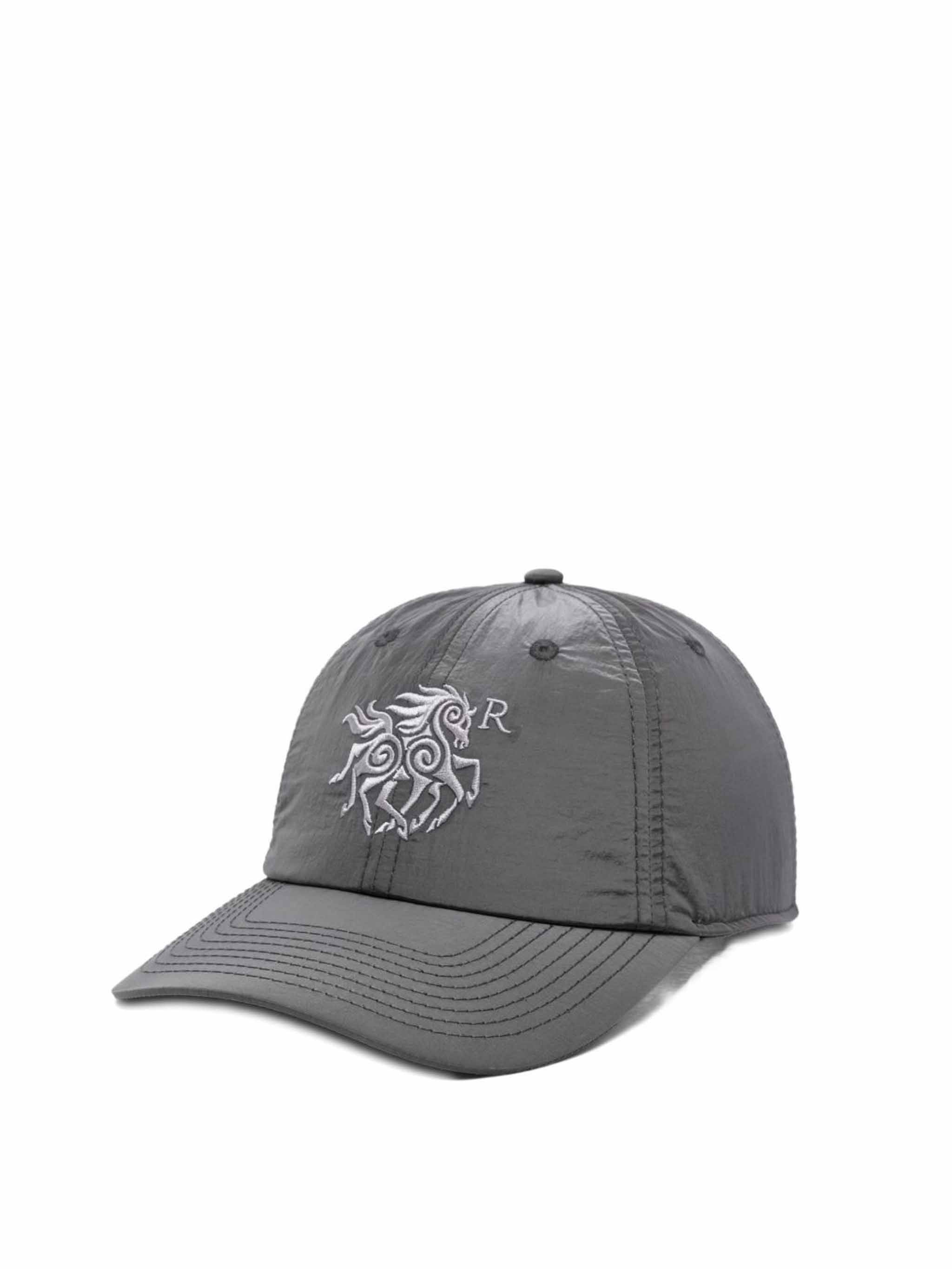 Cappello grigio Cascade di Ranra i poliammide con design ricamato, cinturino regolabile e fibbia in metallo.