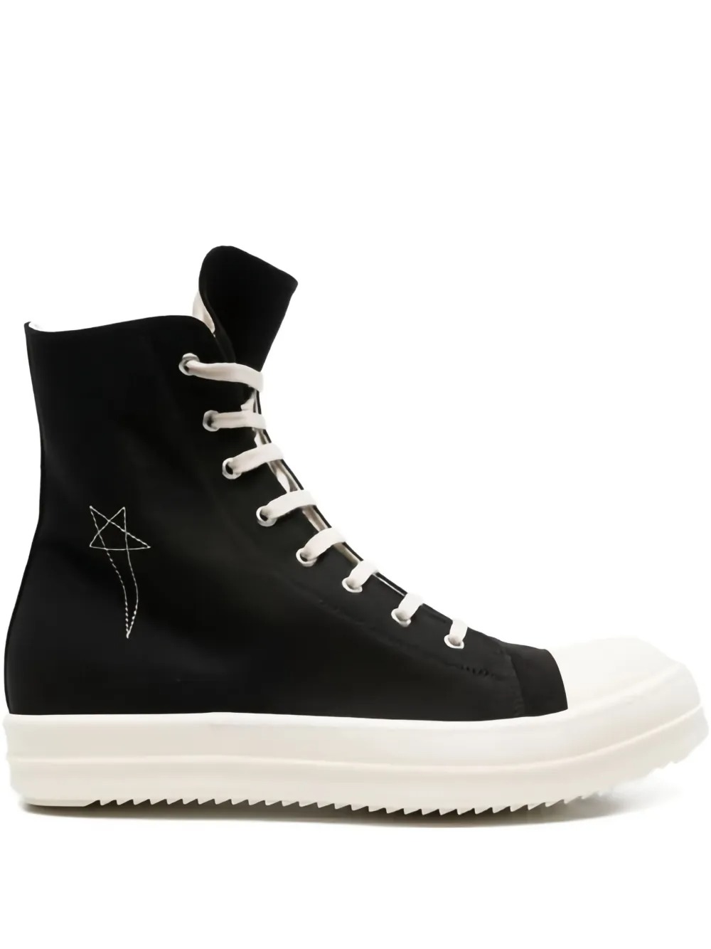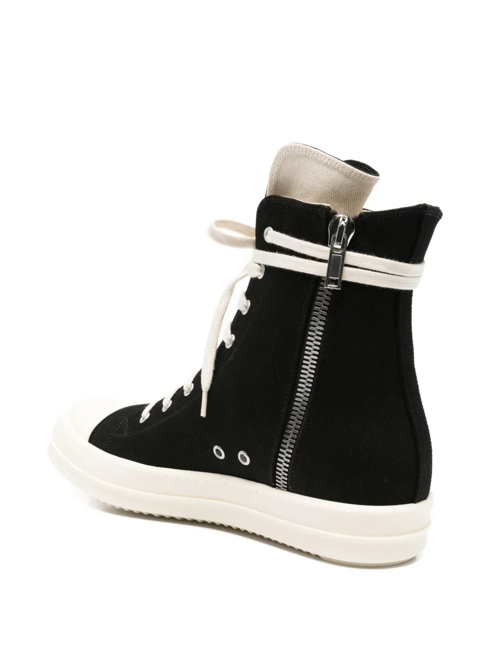 Sneakers nere Sneaks di Rick Owens DRKSHDW in cotone con punta tonda, design high-top, chiusura con lacci, zip laterale e suola in gomma a contrasto.