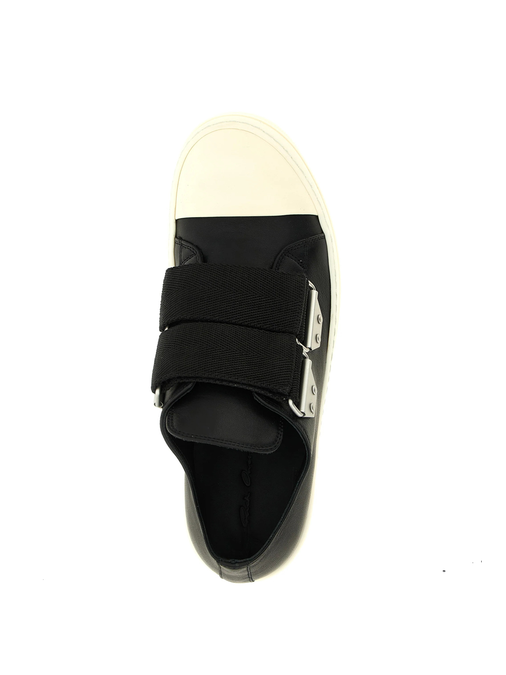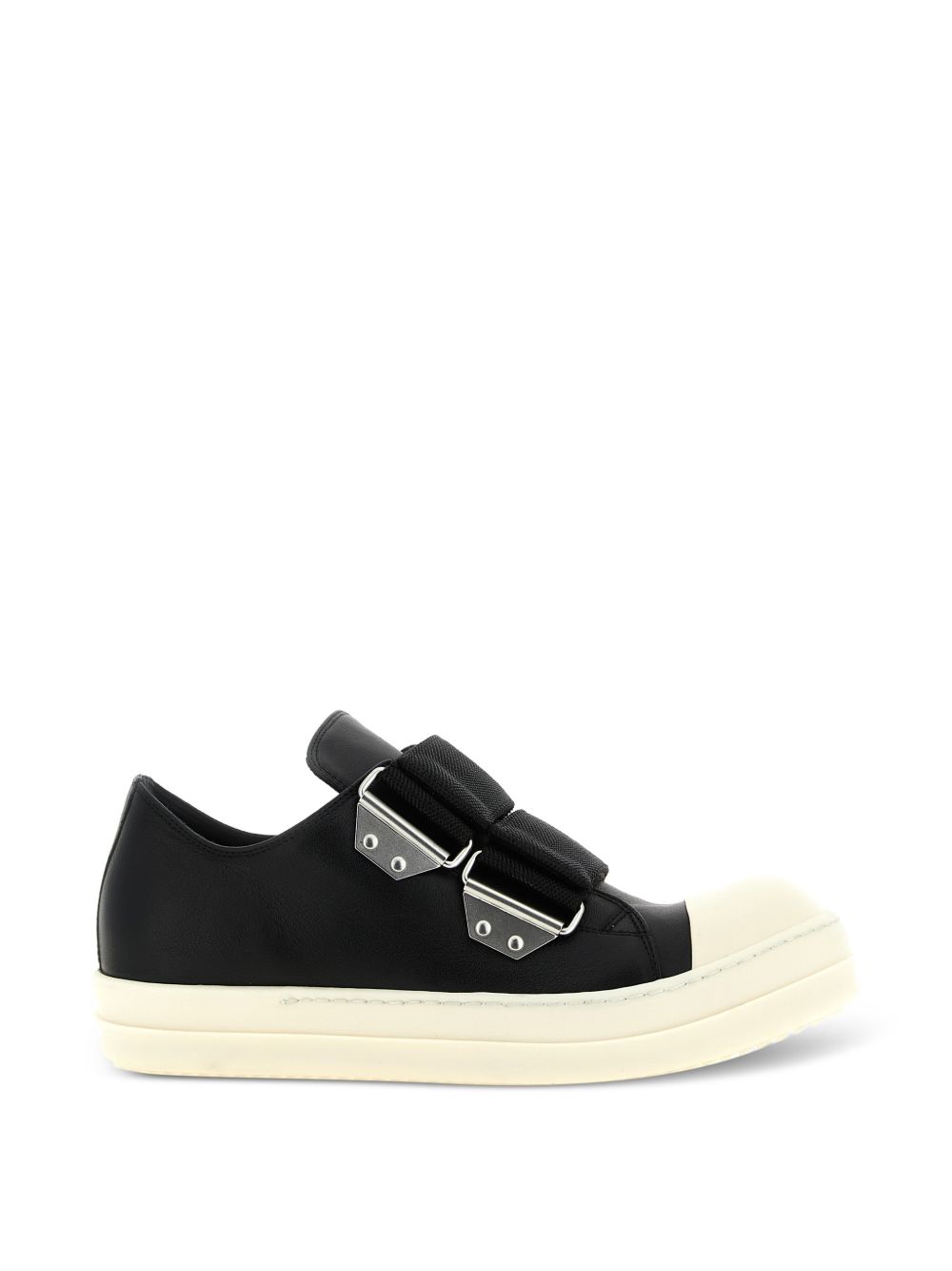 Sneakers nere Strap Low Sneaks di Rick Owens in pelle con punta tonda, chiusura con fibbie e suola in gomma.