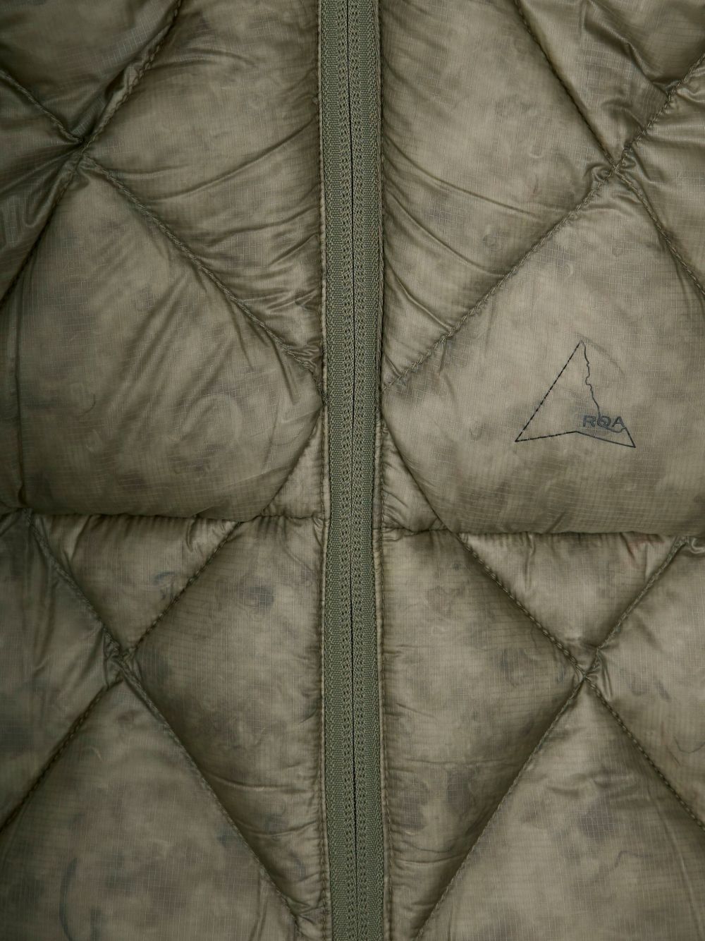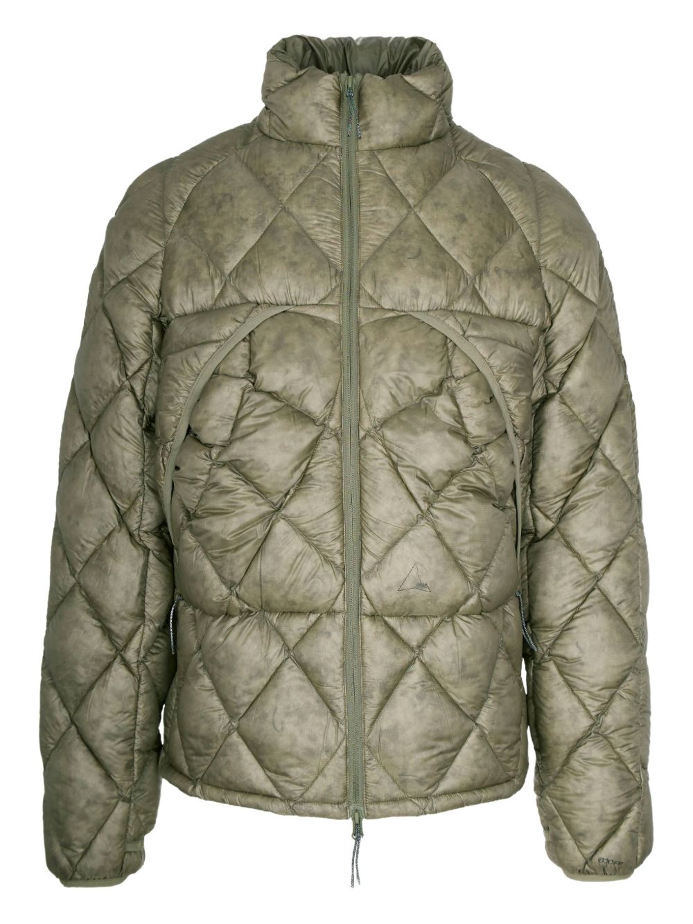 Giacca imbottita verde salvia Nuna 800 Fill Power Hooded di Roa in poliammide con cappuccio nascosto, polsini e finiture elasticizzate e tasche frontali con zip.
