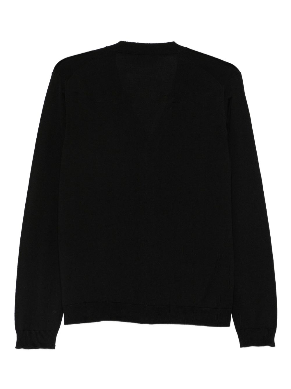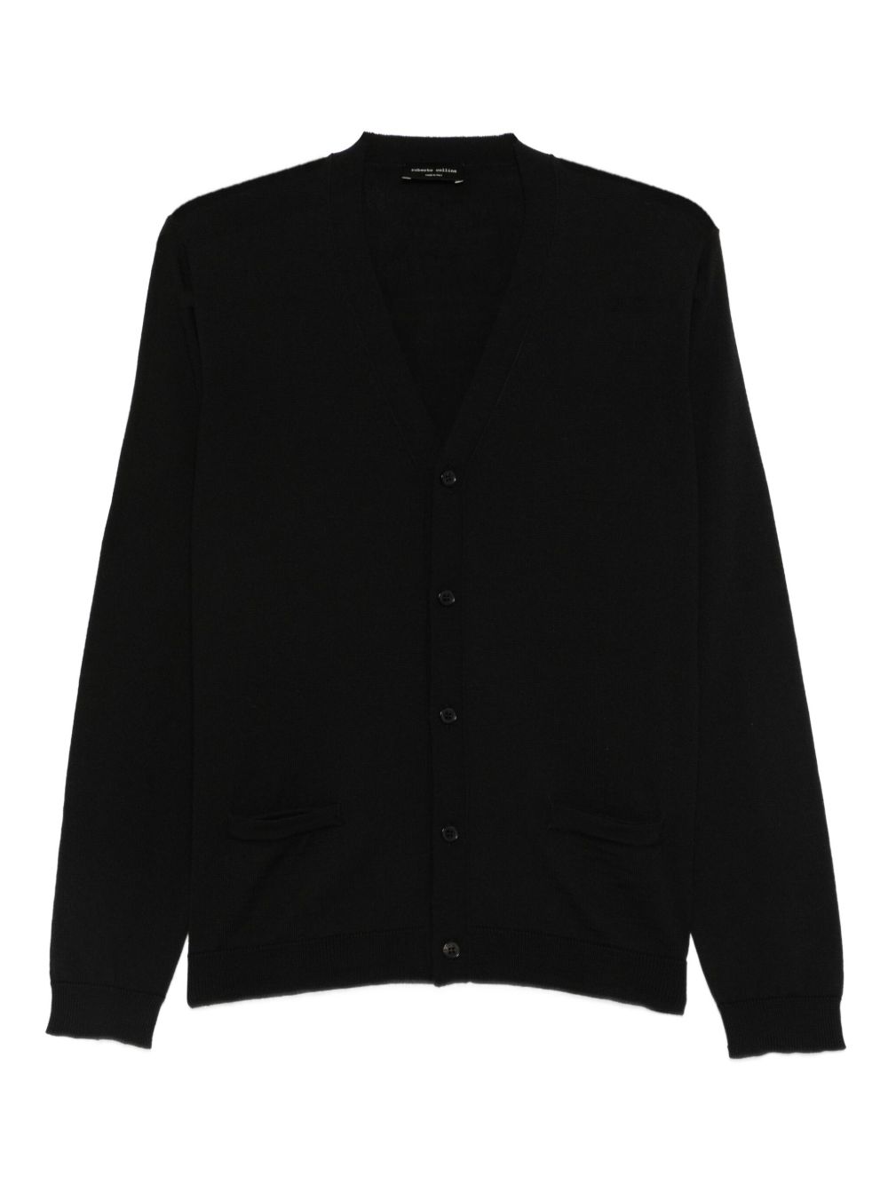 Cardigan nero di Roberto Collina in lana con scollo a V, chiusura frontale con bottoni, maniche lunghe e orlo dritto.
