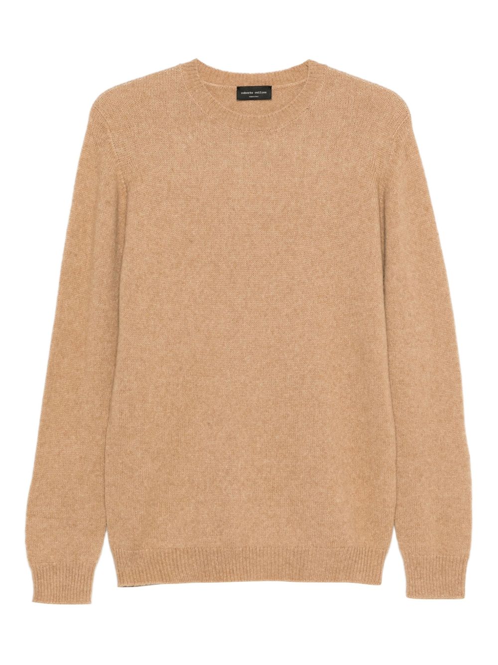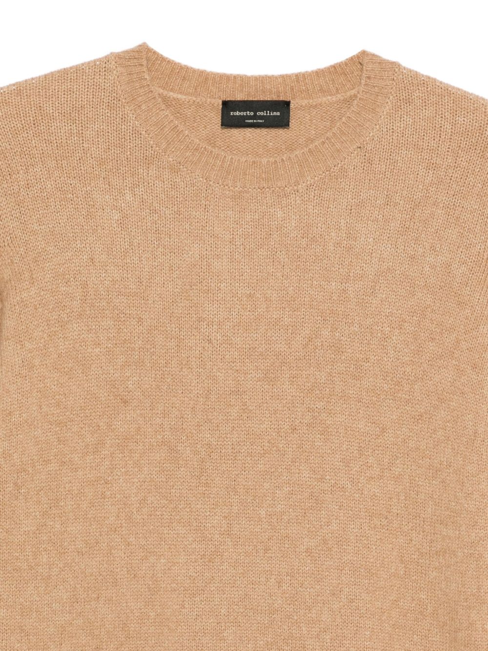 Maglione caramello di Roberto Collina in lana con girocollo, maniche lunghe e orlo dritto.