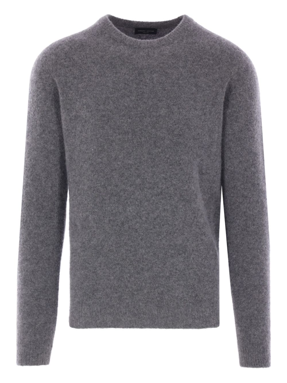 Maglione grigio antracite di Roberto Collina in lana con girocollo, maniche lunghe e orlo dritto.