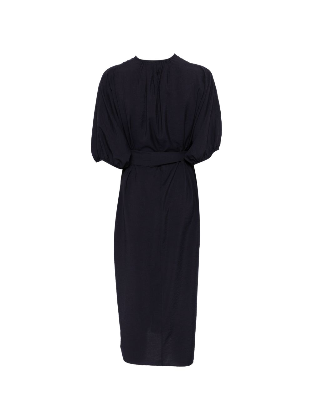 Abito viola Alger di Soeur in viscosa con scollo a V, dettagli arricciati sulla schiena, tasche laterali, design ampio e orlo dritto.