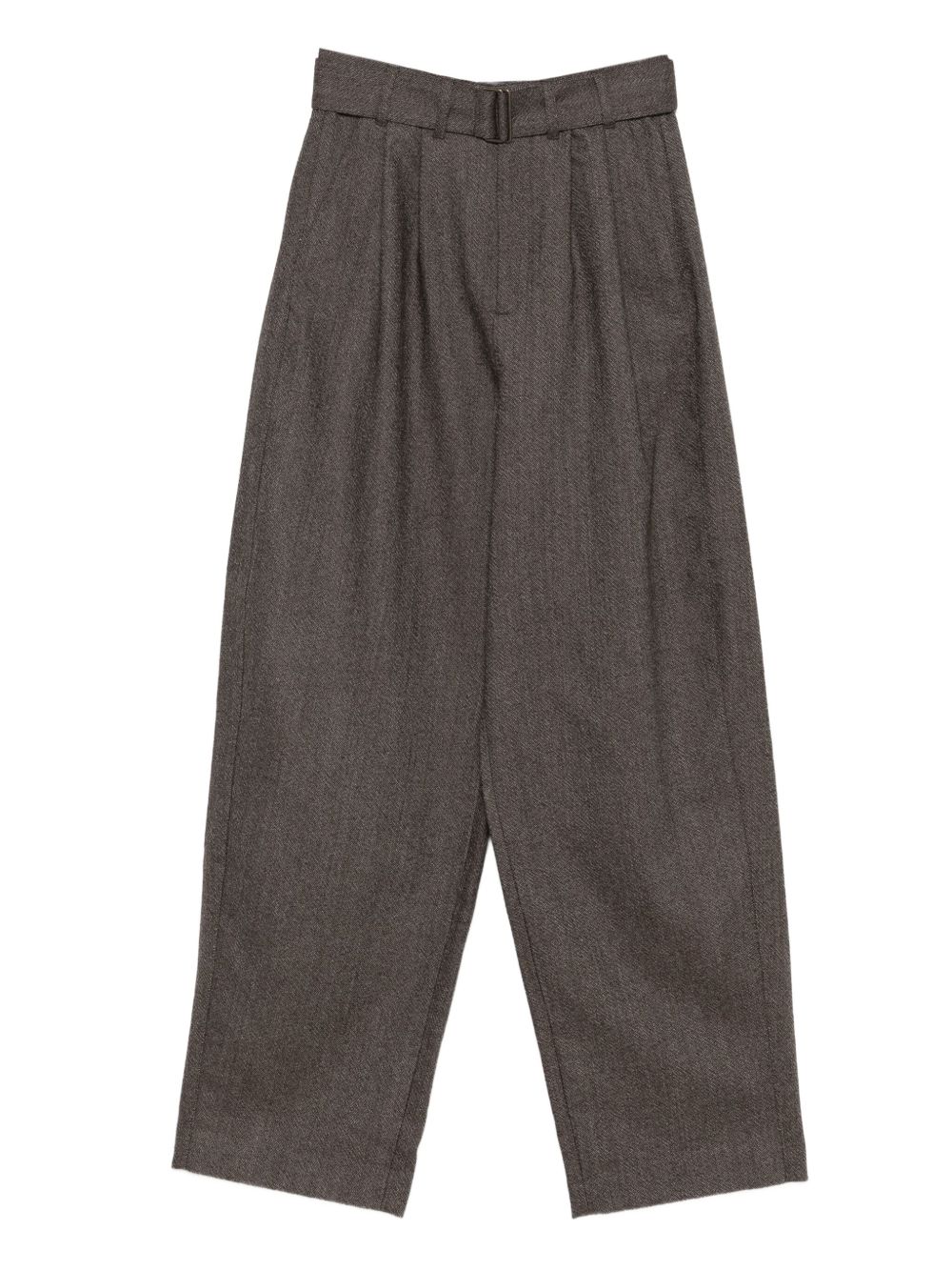 Pantaloni marroni ecru Cole di Soeur in lana con vita con passanti, cintura rimobile e orlo dritto.