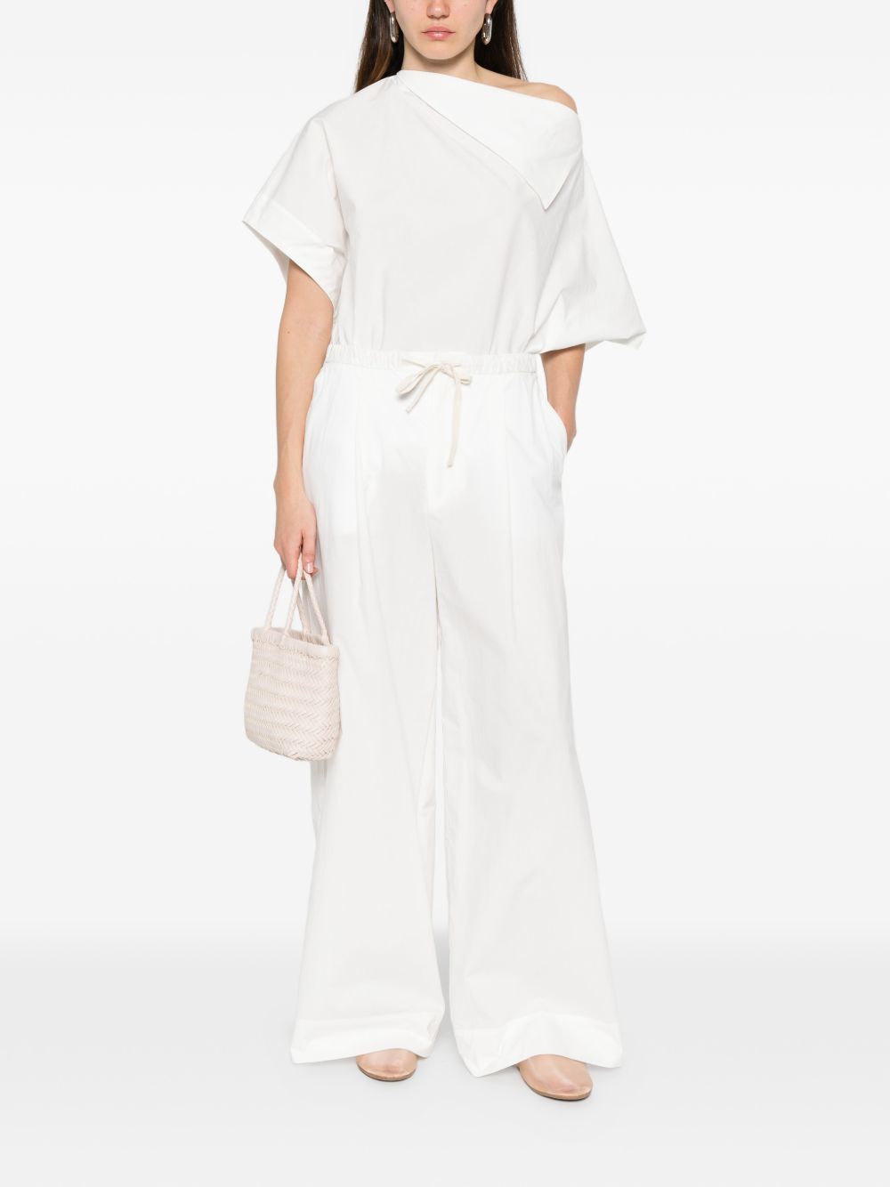 Pantaloni bianchi Hugues di Soeur in tencel con chiusura con coulisse zip e gancio, tasche laterali e posteriori e orlo dritto.