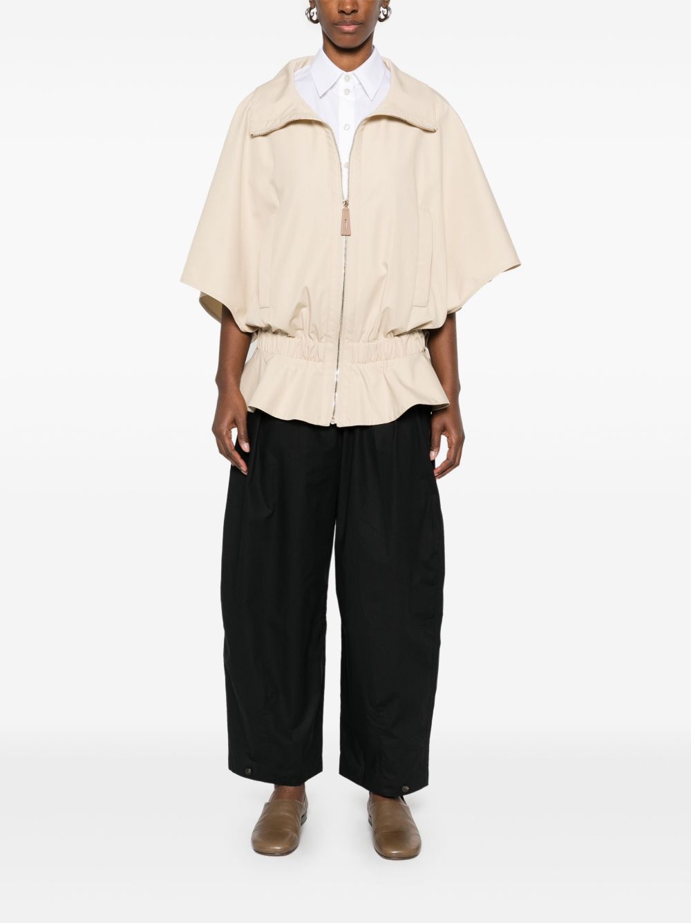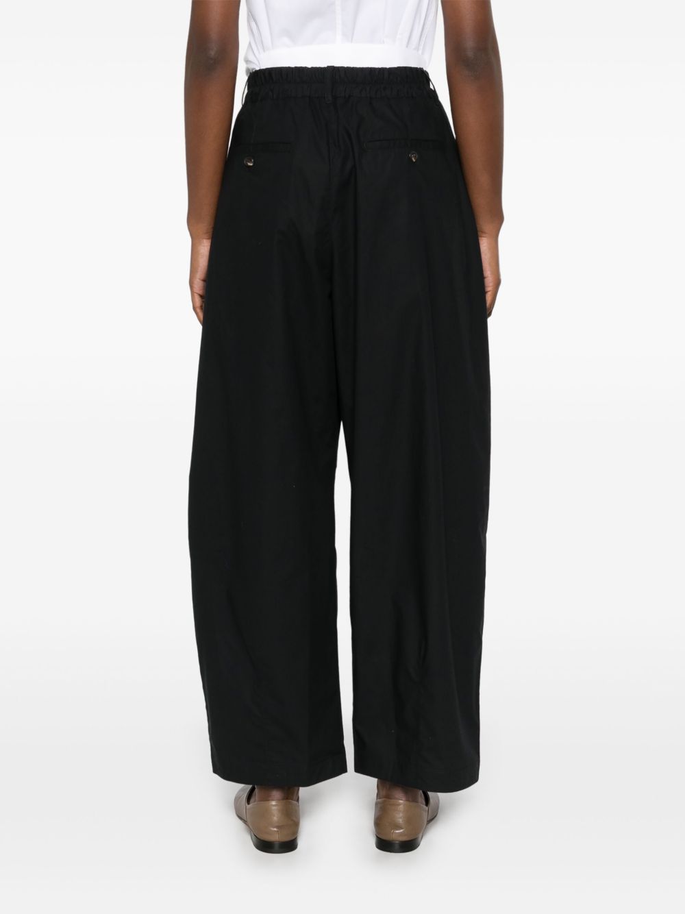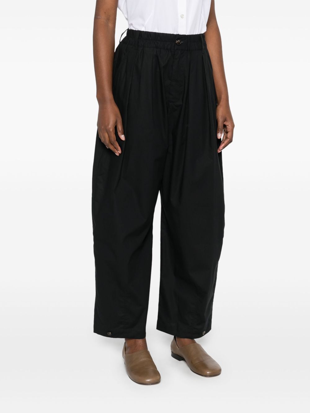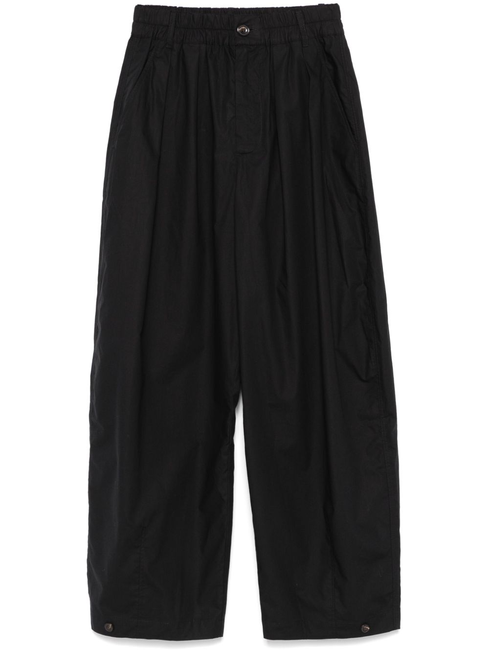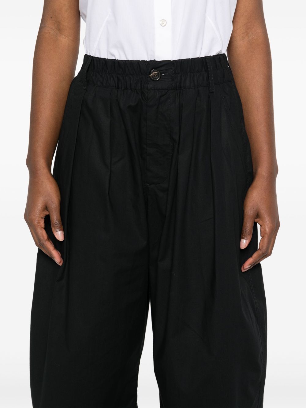 Pantaloni neri Vernon di Soeur in cotone con vita elasticizzata, chiusura frontale con bottone e zip e orlo dritto.
