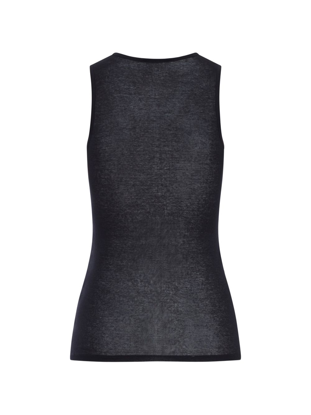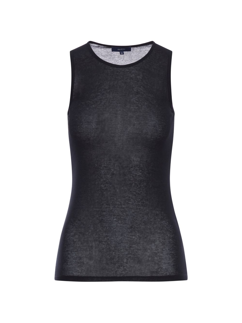Top nero Isis di Soeur in cotone con scollo rotondo, design trasparente e orlo dritto.