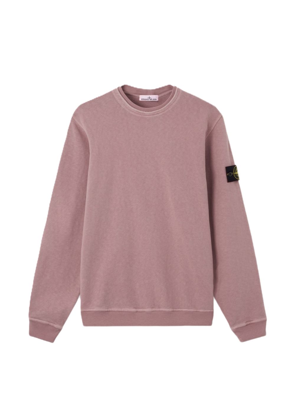 Felpa viola 6100034 di Stone Island in cotone con girocollo, toppa con logo, maniche lunghe e bordi a costine.