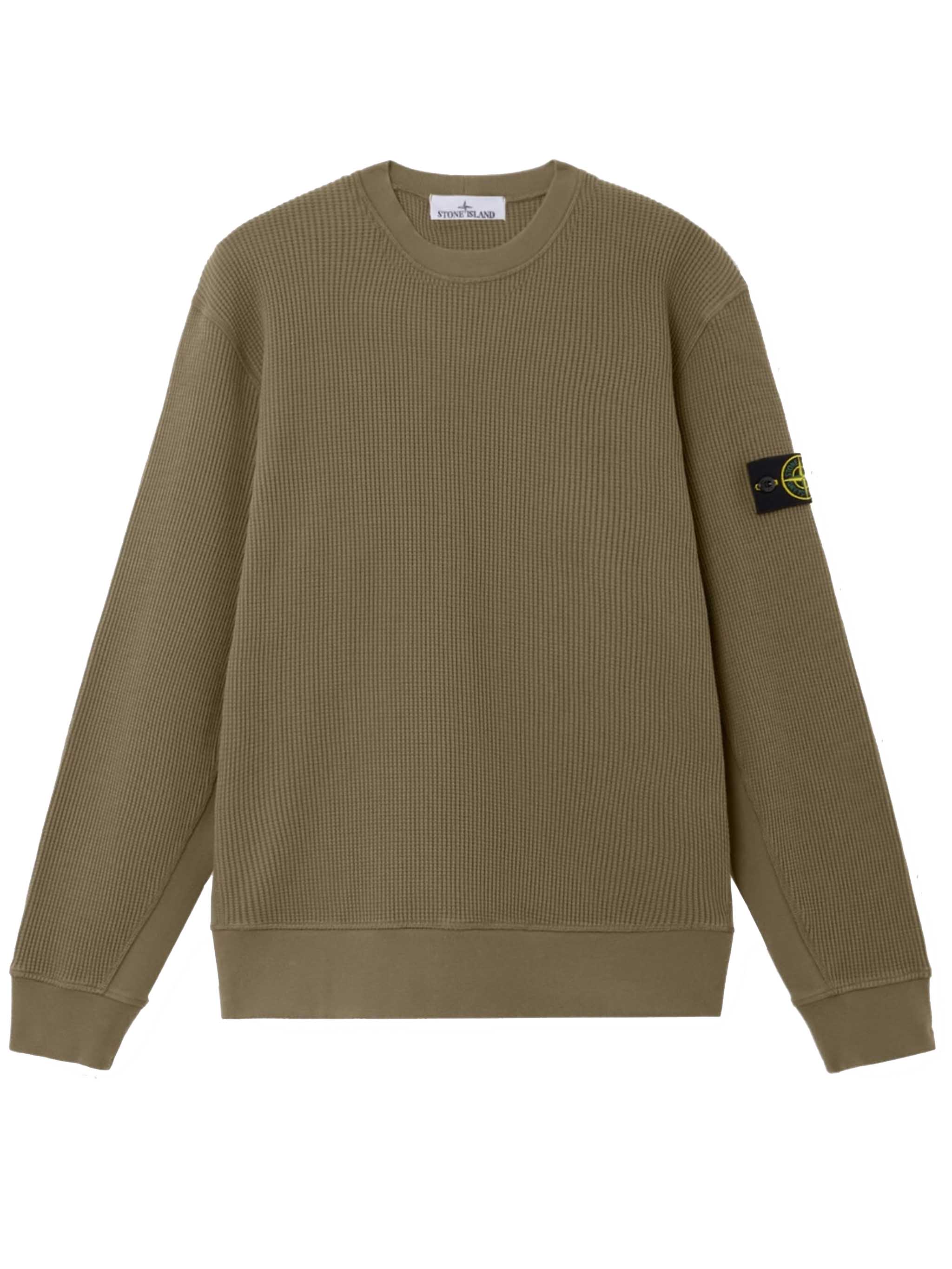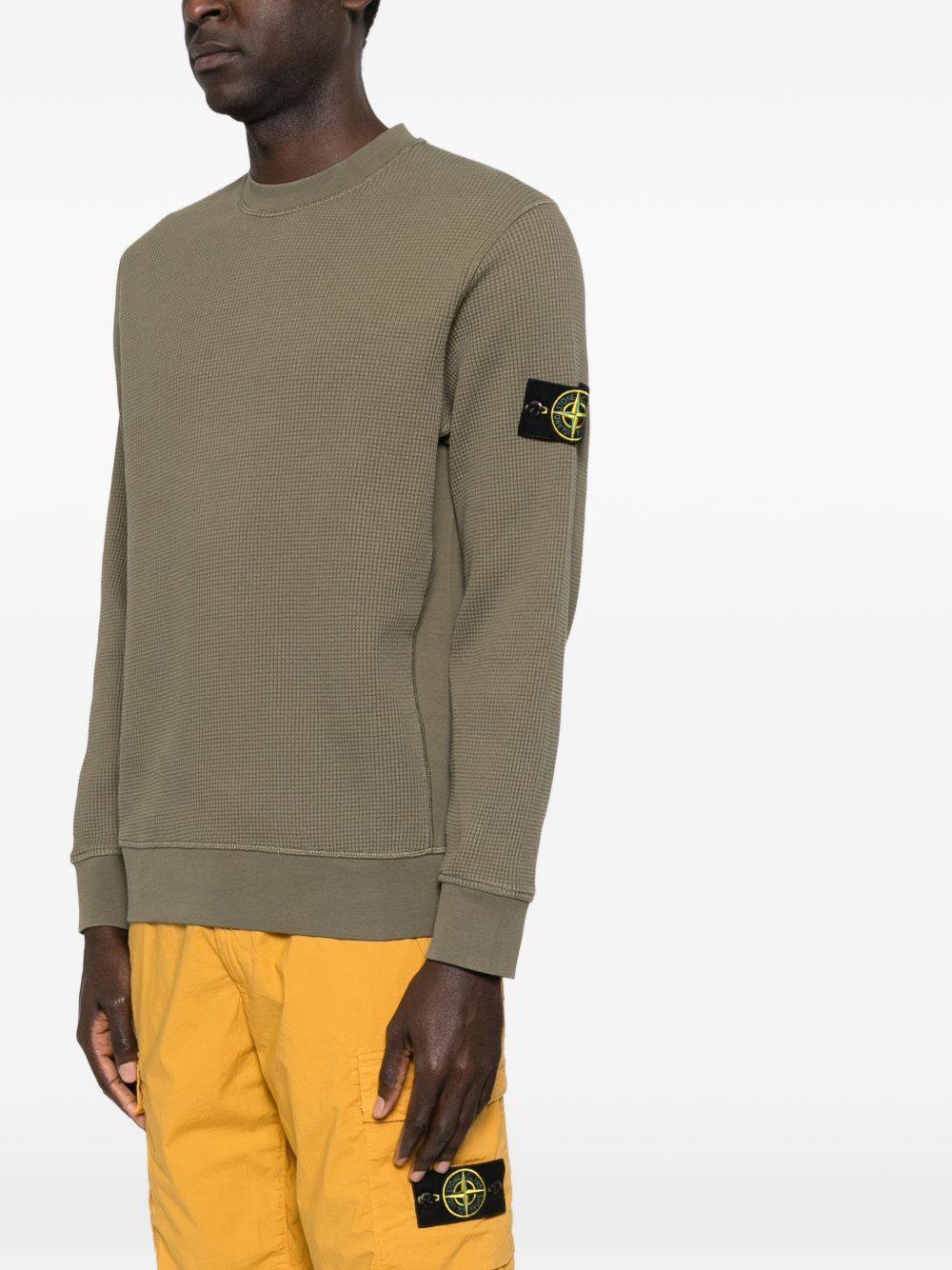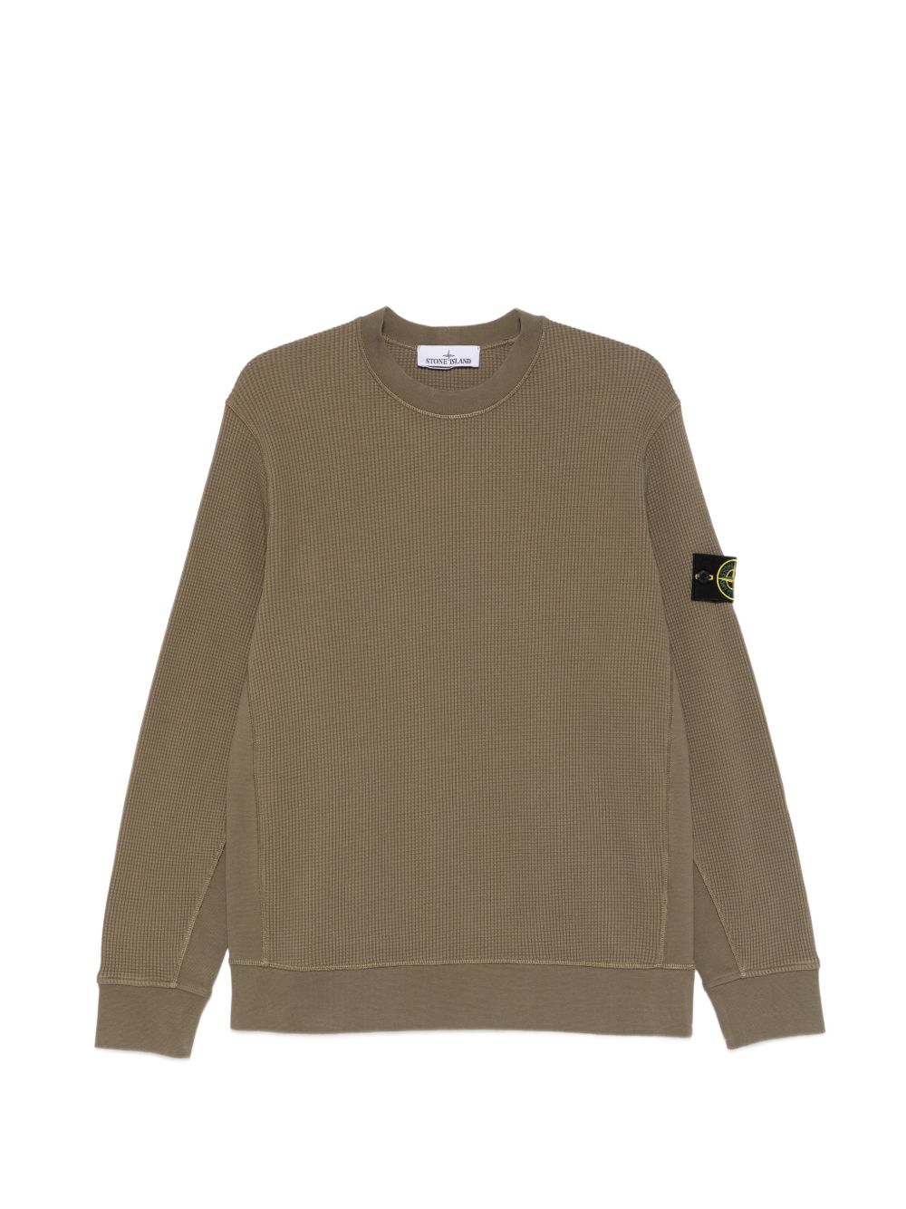 Felpa verde militare di Stone Island in cotone con girocollo, maniche lunghe, trama a nido d'ape,badge e orlo dritto.