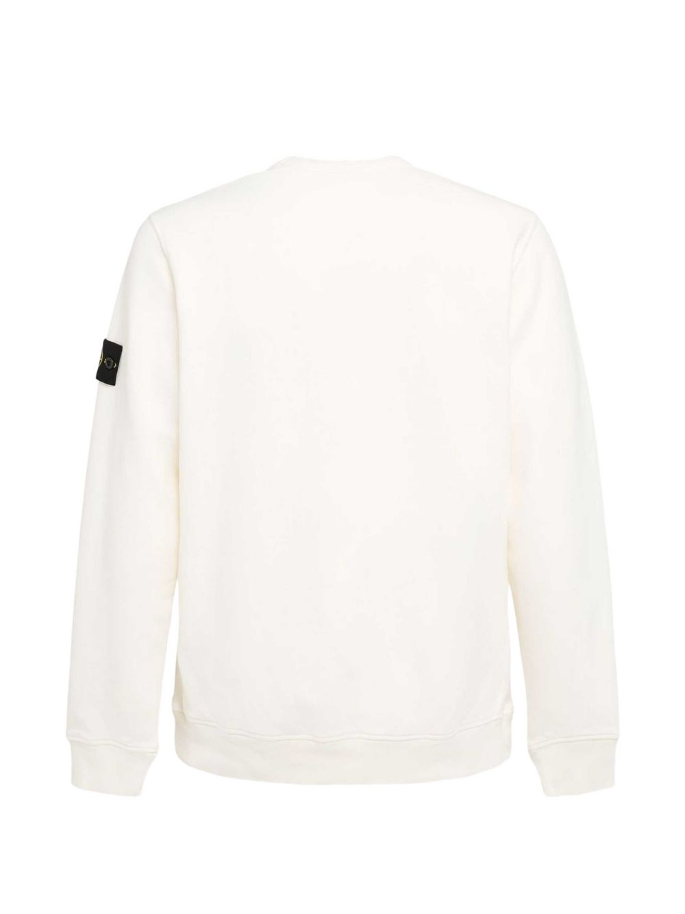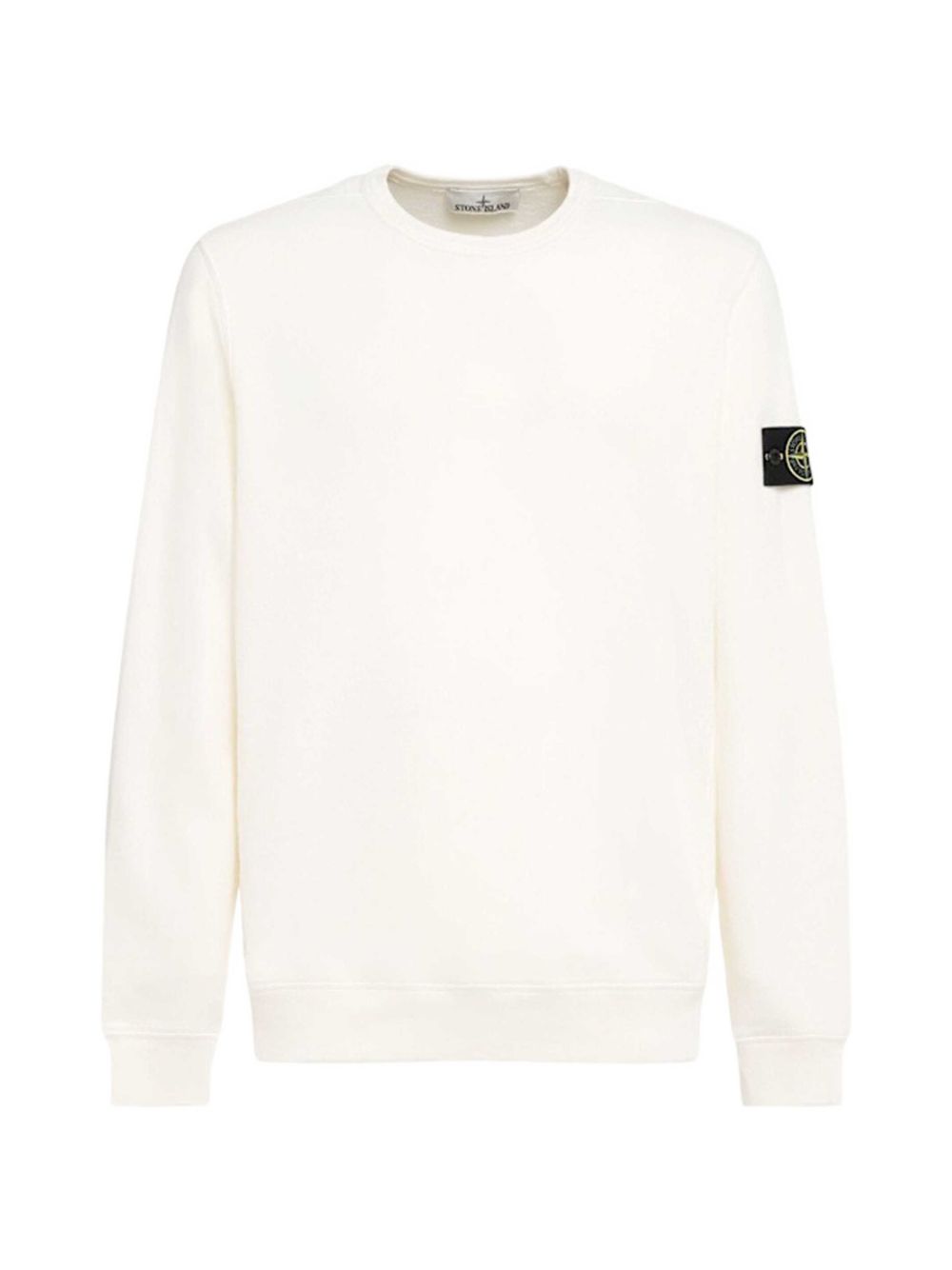 Felpa avorio di Stone Island in cotone con girocollo, maniche lunghe, badge e orlo e polsini a coste.