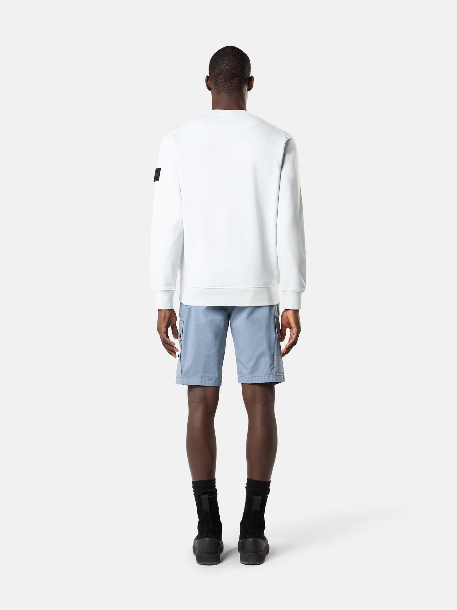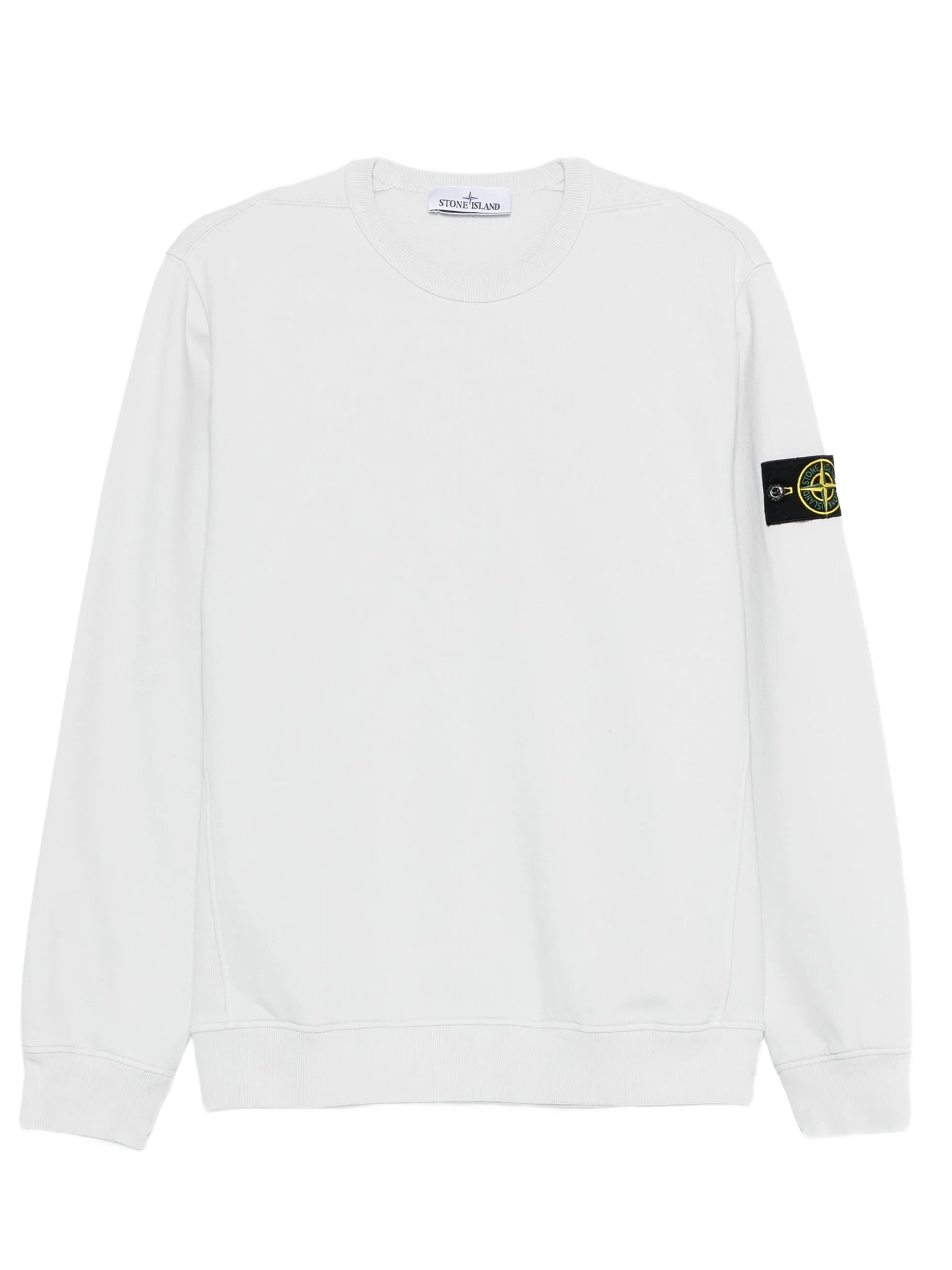 Felpa bianca di Stone Island in cotone con girocollo, maniche lunghe, badge e orlo e polsini a coste.