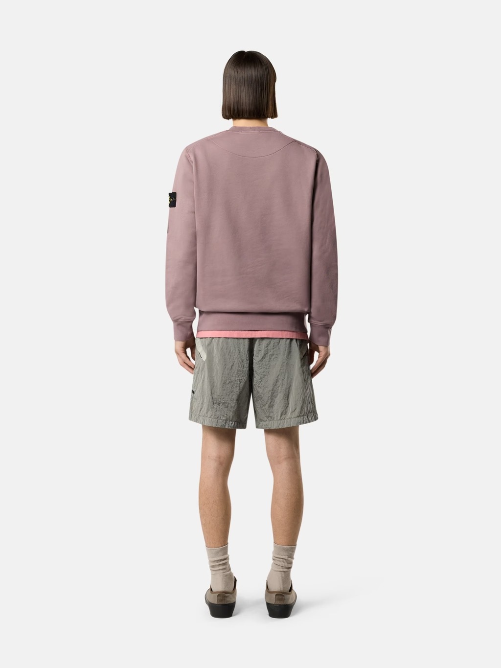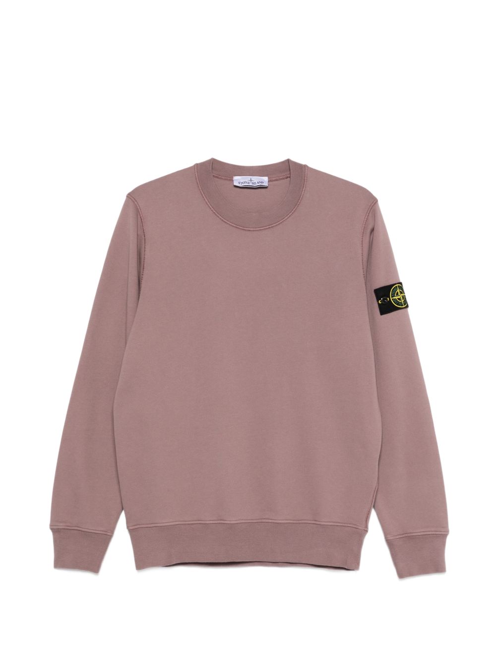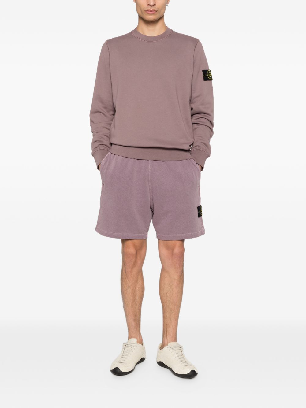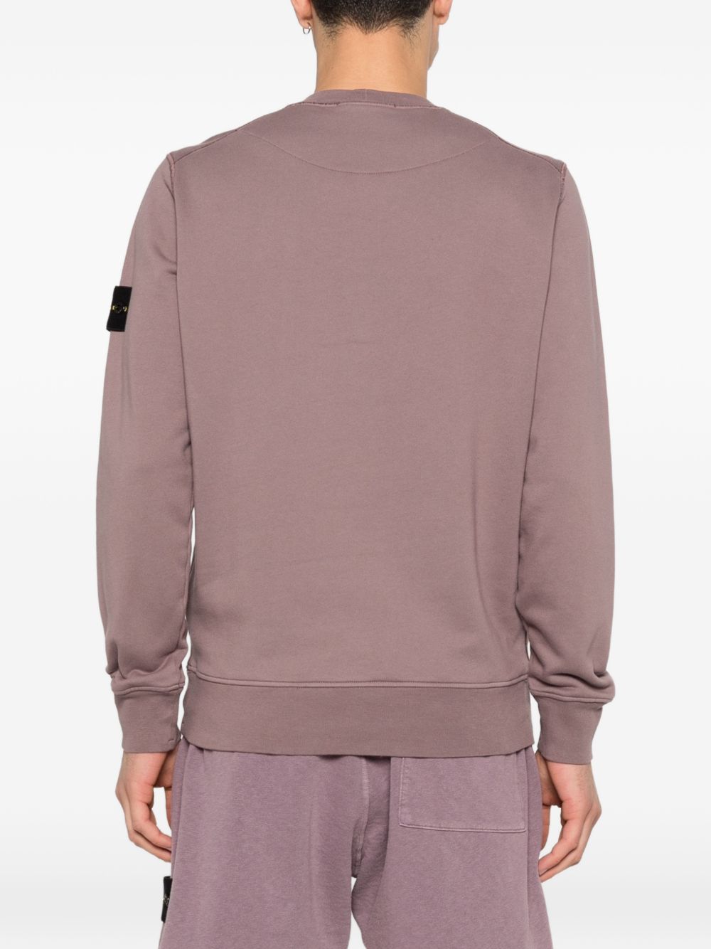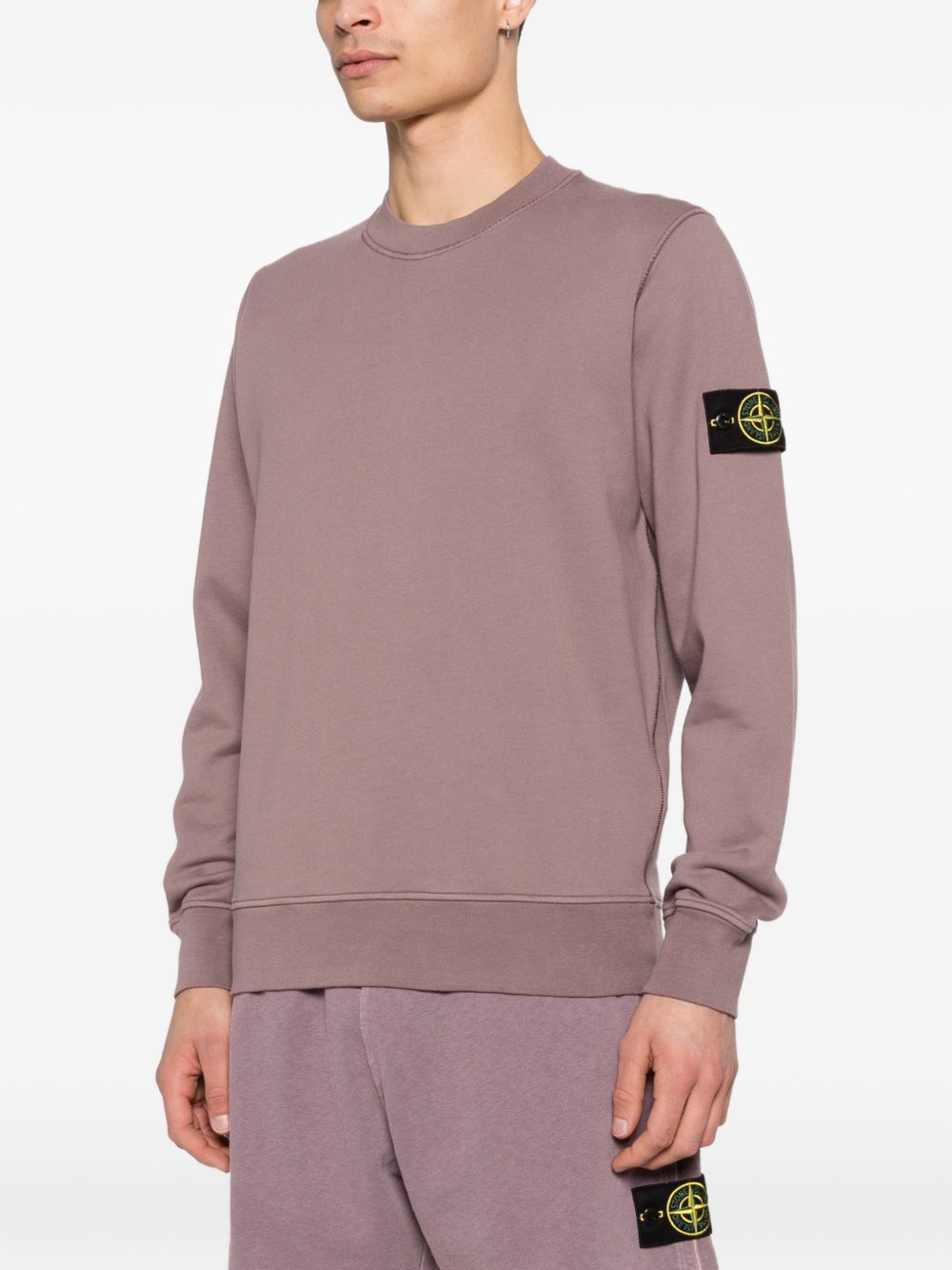 Felpa grigio viola di Stone Island in cotone con girocollo, maniche lunghe, badge e orlo e polsini a coste.