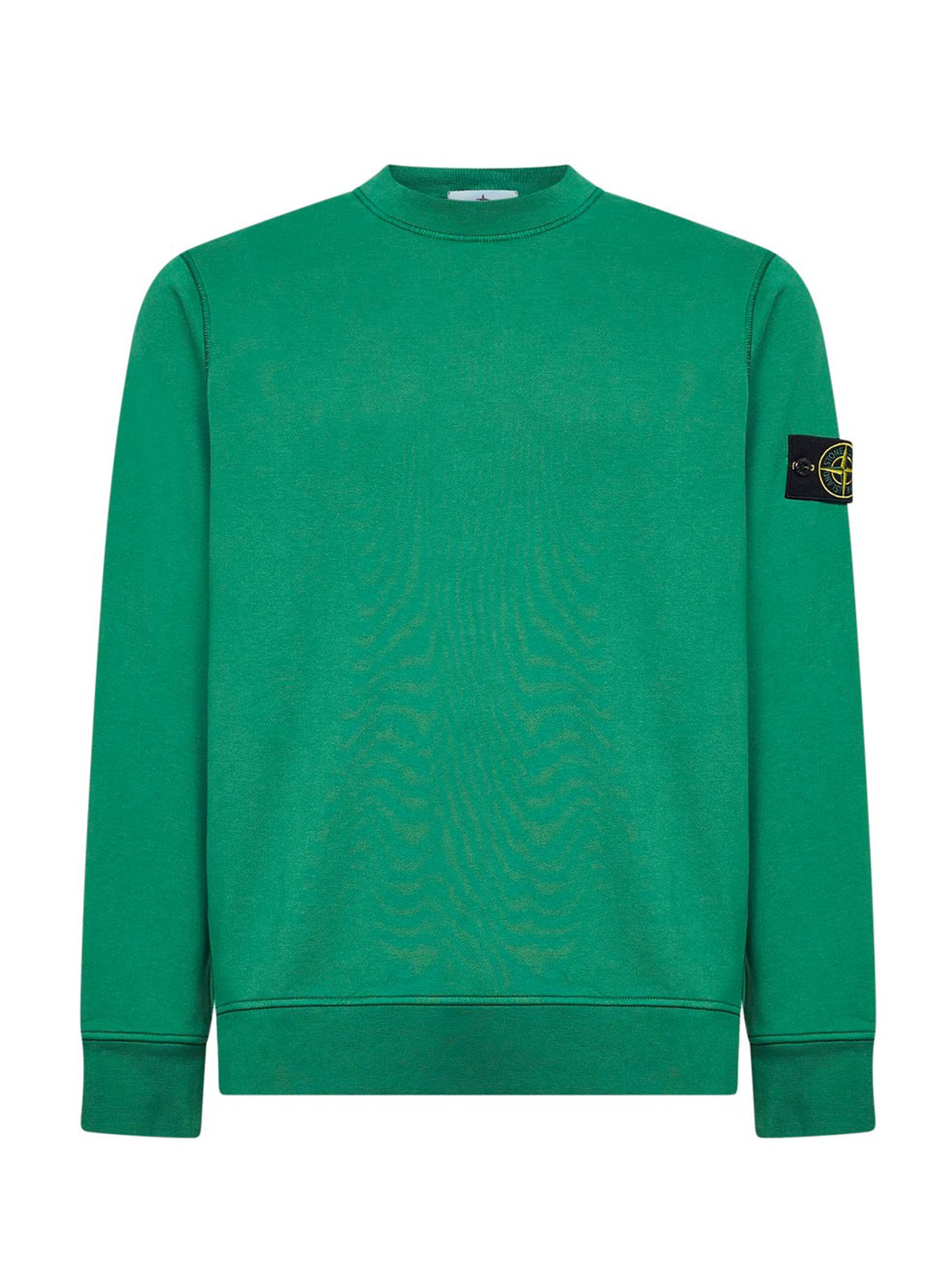 Felpa verde di Stone Island in cotone con girocollo, maniche lunghe, badge e orlo e polsini a coste.