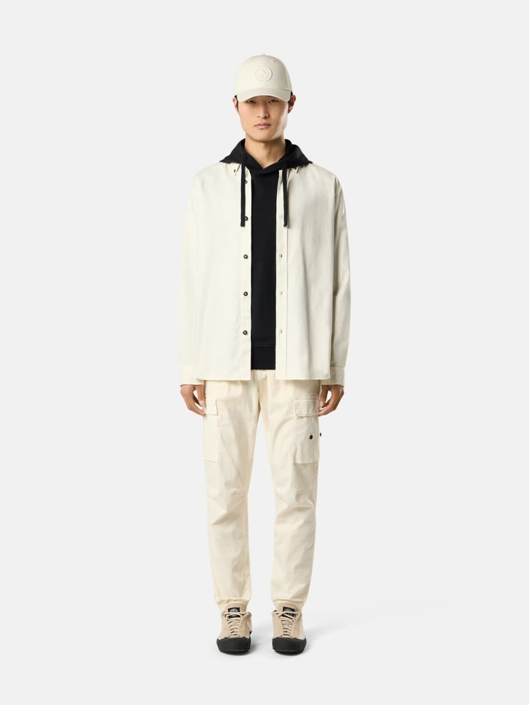 Felpa nera di Stone Island in cotone con cappuccio con coulisse, maniche lunghe, tasca con patta sulla manica e orlo e polsini a coste.