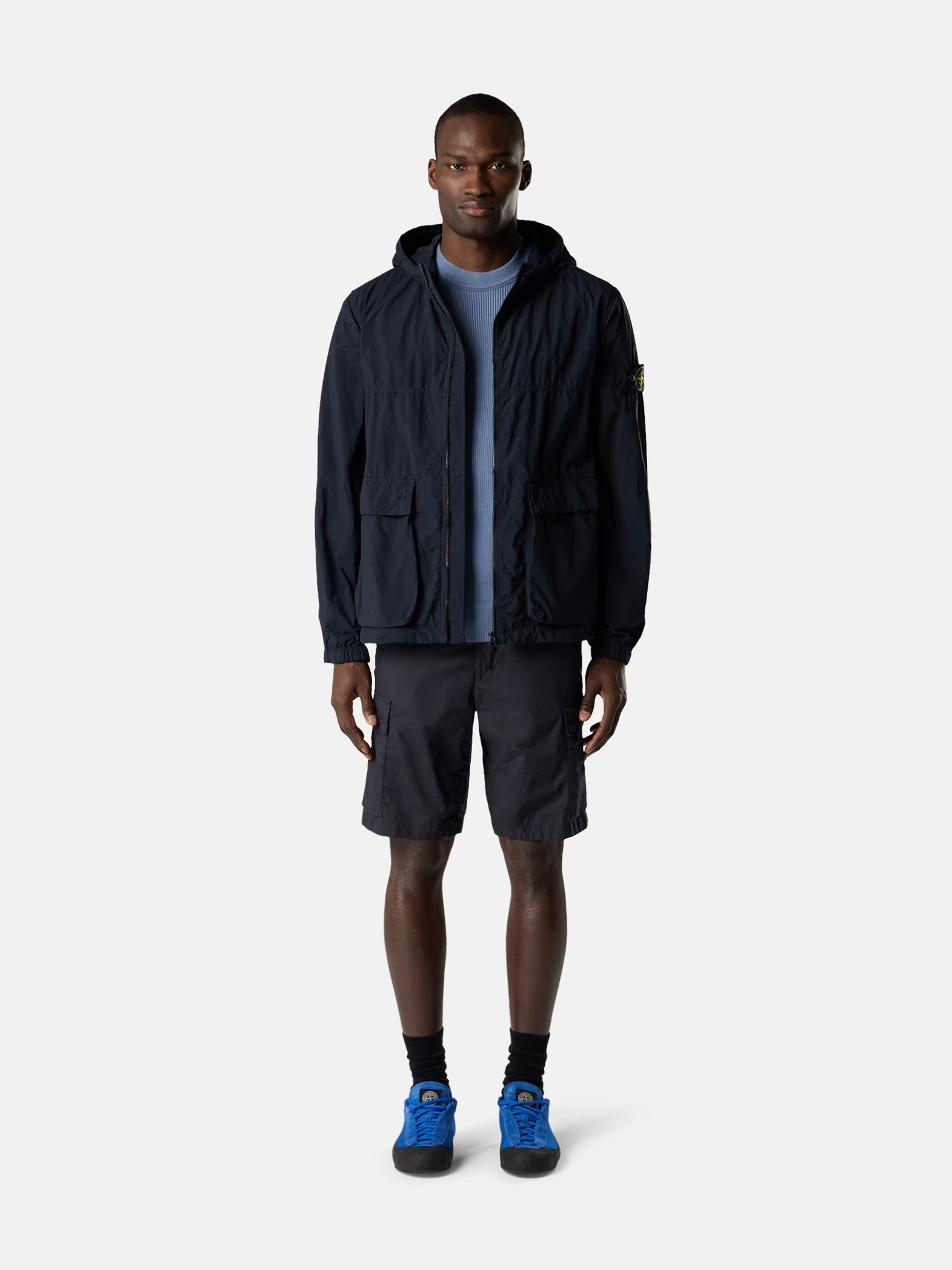 Giacca navy di Stone Island in poliammide con chiusura con zip a doppio cursore, tasche laterali, con patta, badge e orlo dritto.