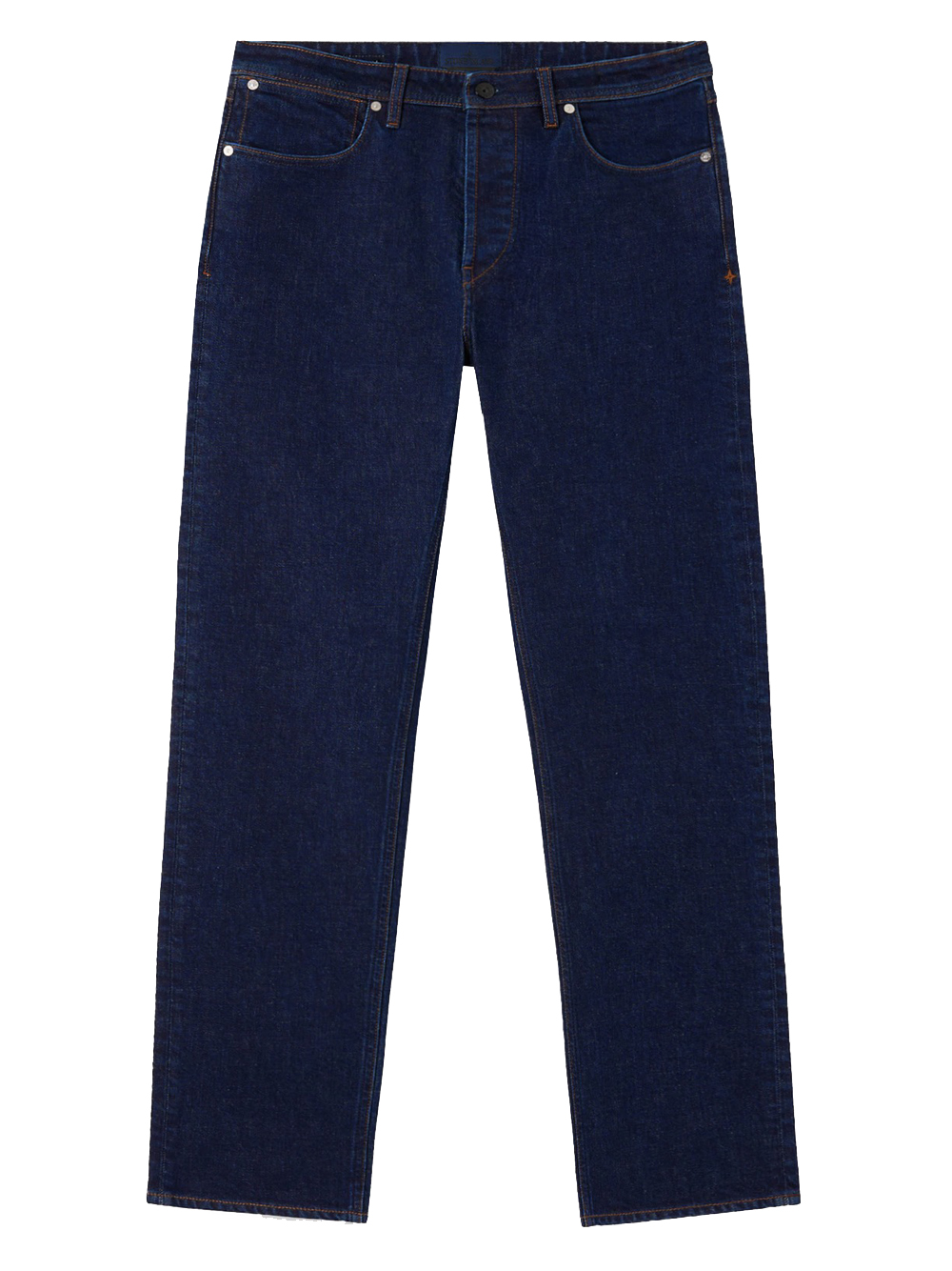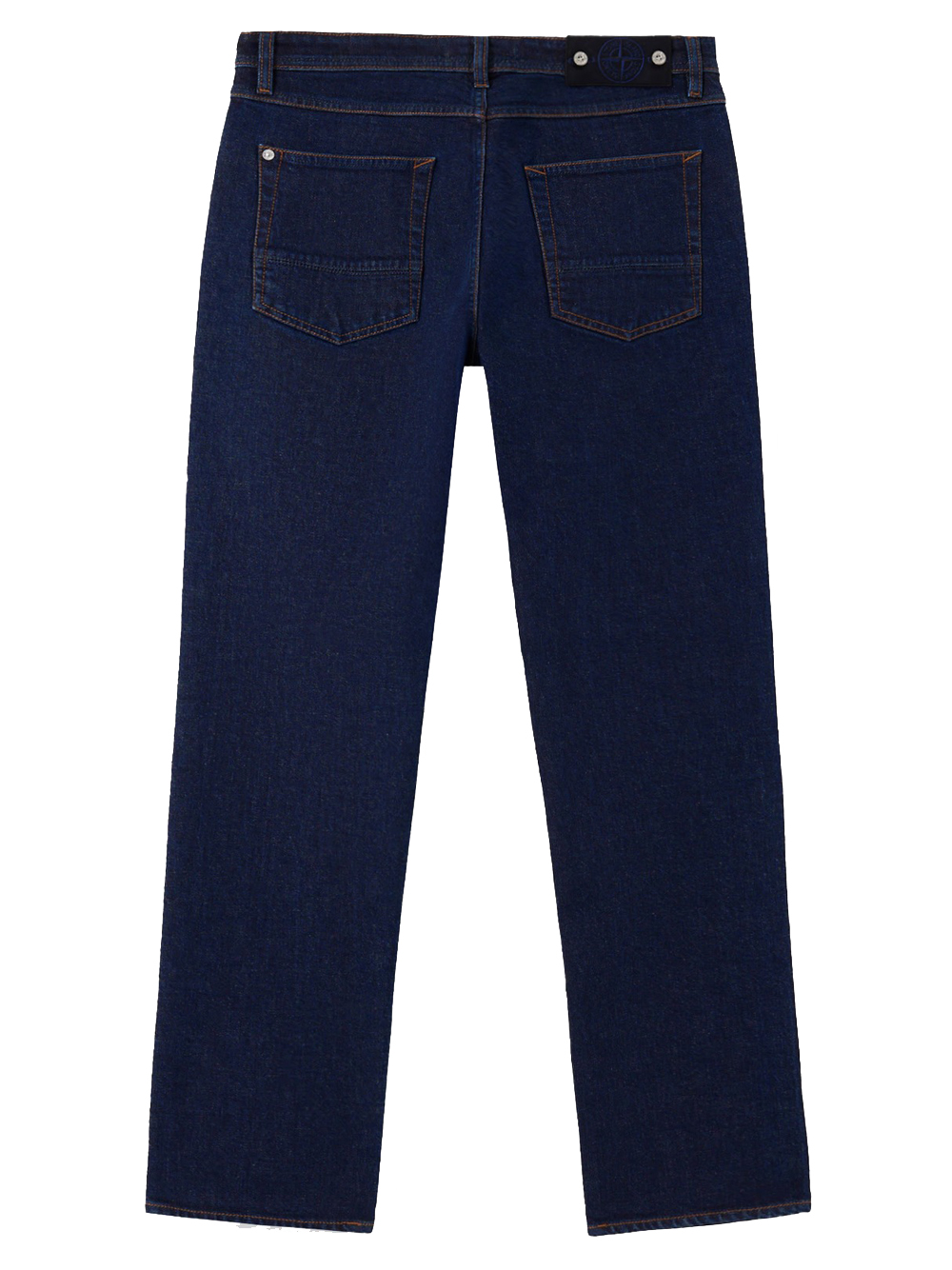 Jeans blu di Stone Island in cotone con vita con passanti, chiusura con bottone, design 5 tasche e orlo dritto.