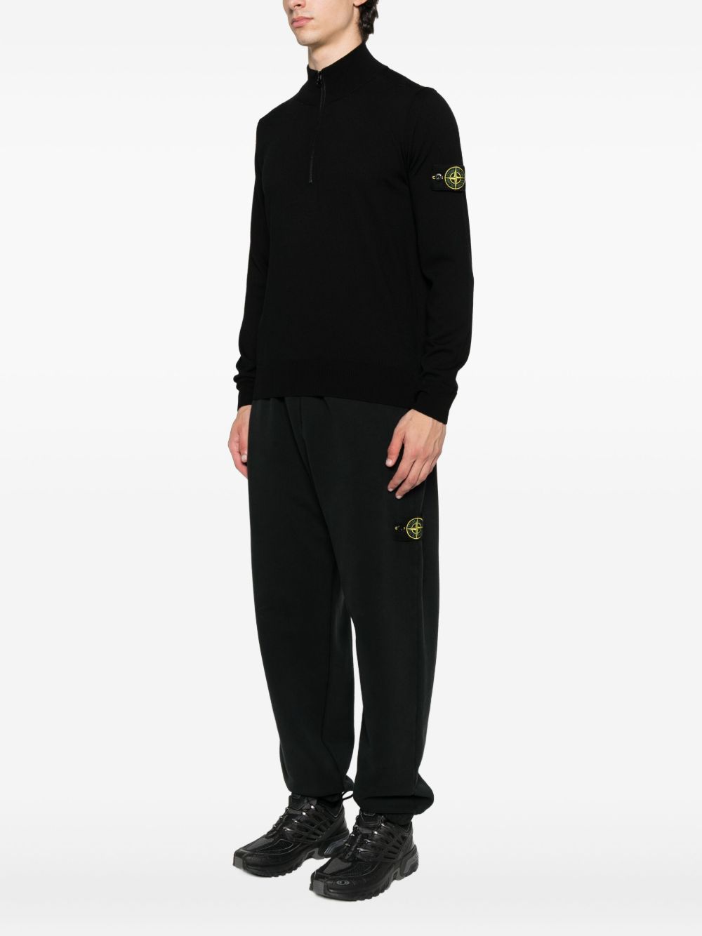 Maglione nero di Stone Island in lana con design design hal-zip, maniche lunghe, polsini e orlo a coste.