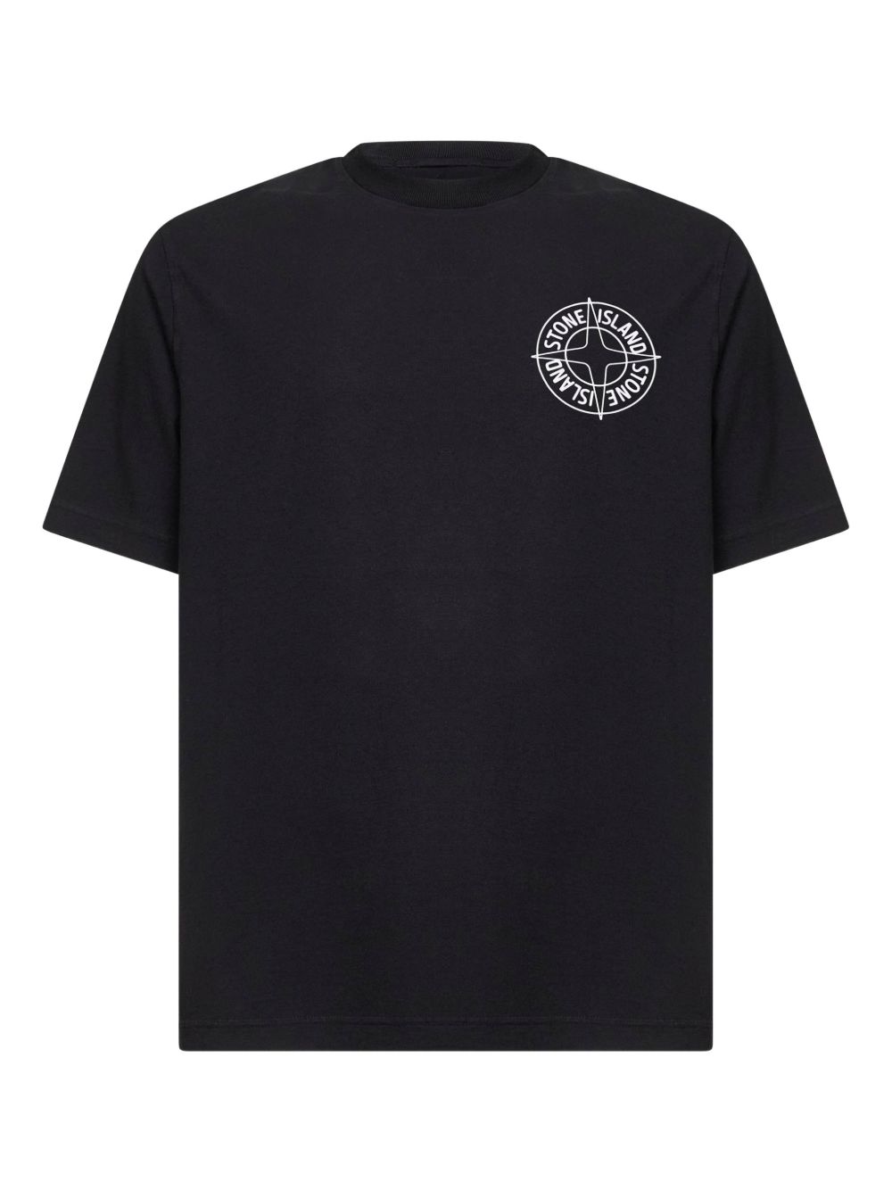 T-shirt nera di Stone Iland in cotone con girocollo, stampa frontale e posteriore, manica corta e orlo dritto.