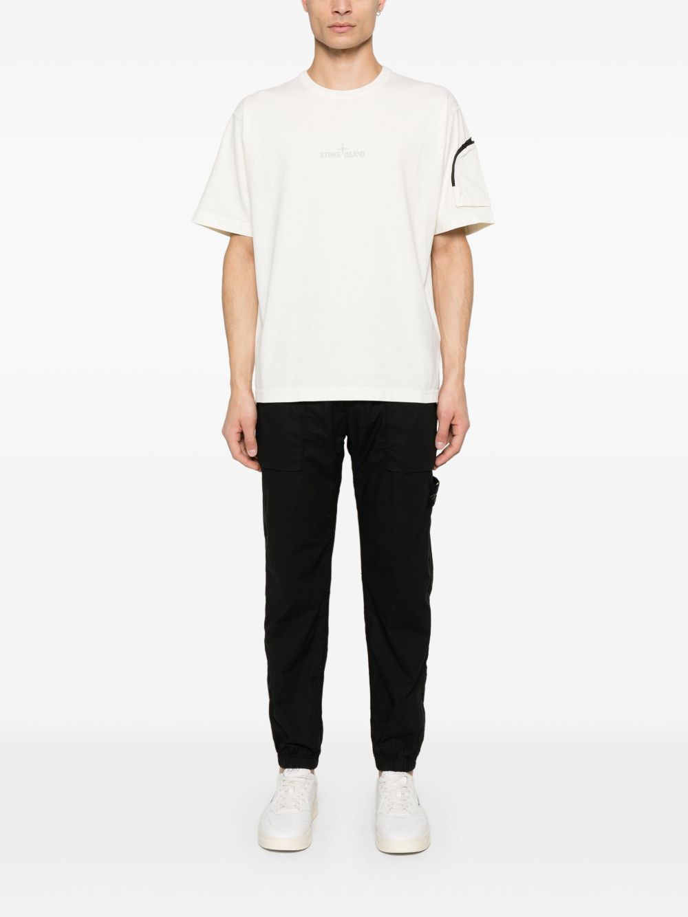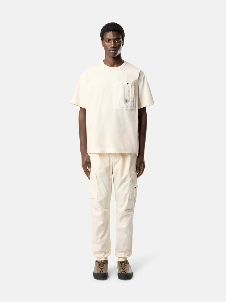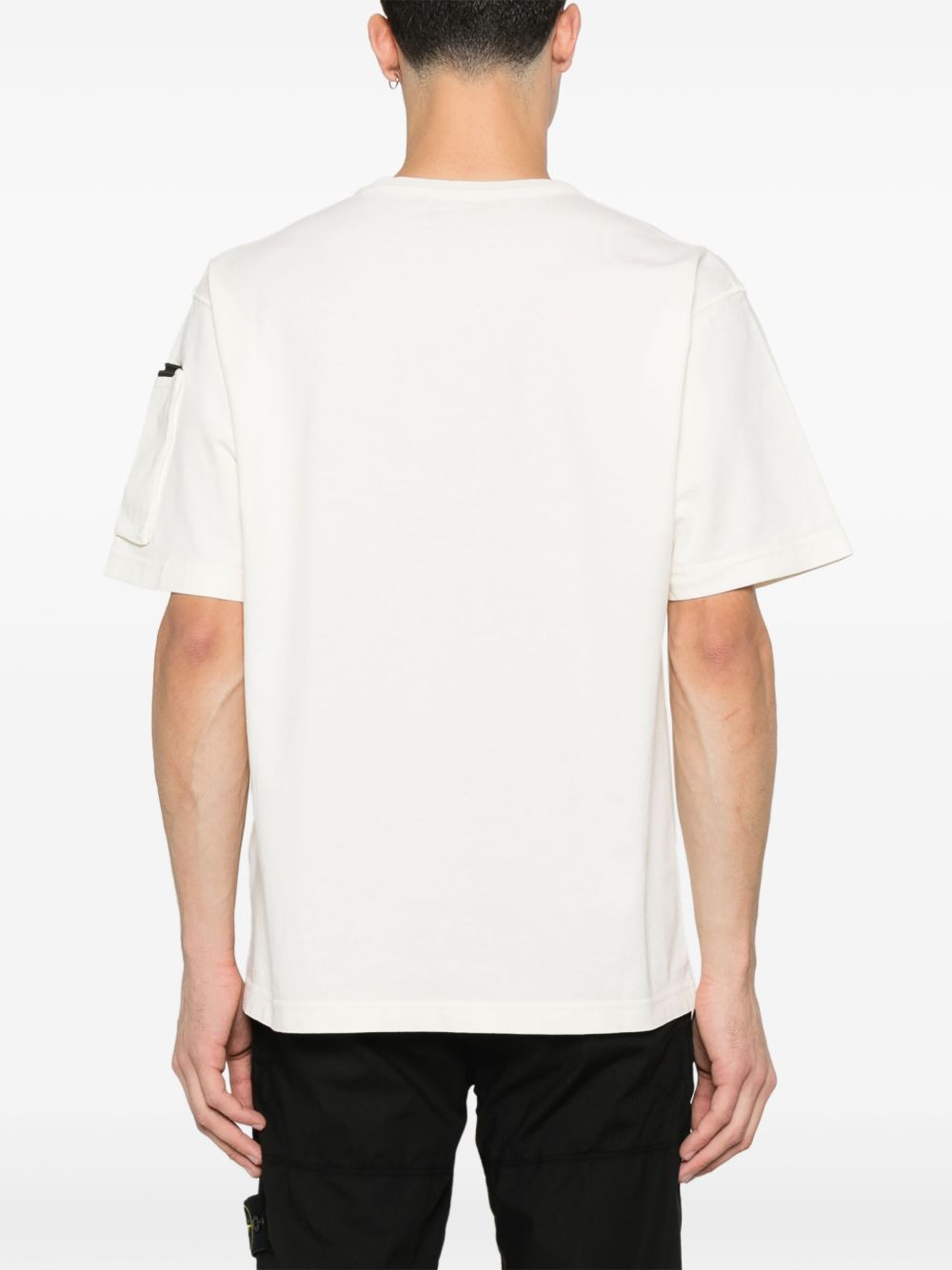 T-shirt avorio di Stone Iland in cotone con girocollo, con tasca sul petto in ripstop, etichetta con logo, manica corta e orlo dritto.