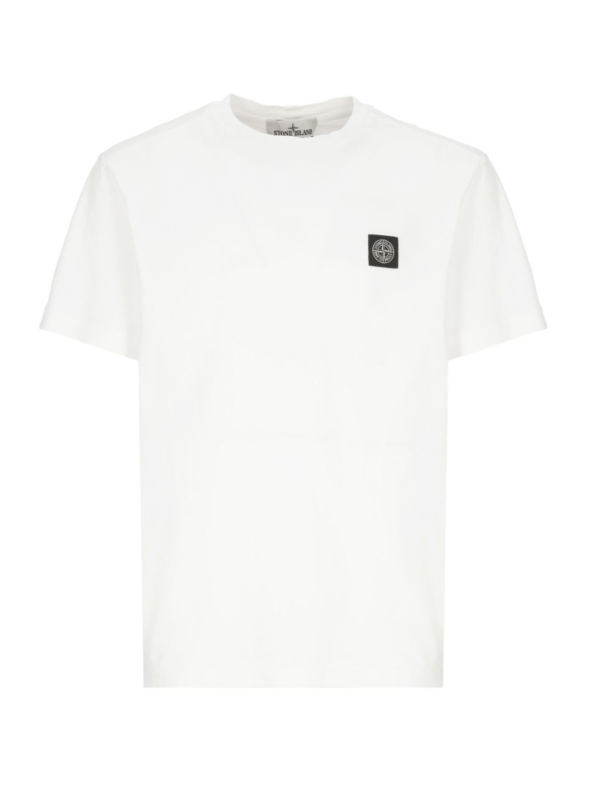 T-shirt bianca di Stone Iland in cotone con girocollo, etichetta con logo, manica corta e orlo dritto.