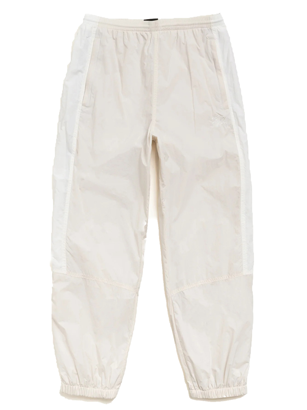 Pantaloni da tuta dalla vestibilità comoda, nylon leggero con fodera in rete, vita elasticizzata con cordino, tasche verticali con cerniera a filetto, ricamo del logo Stüssy Basic Stock, dettagli sui pannelli laterali, polsini elasticizzati con cerniere laterali, tasca posteriore con cerniera a filetto.