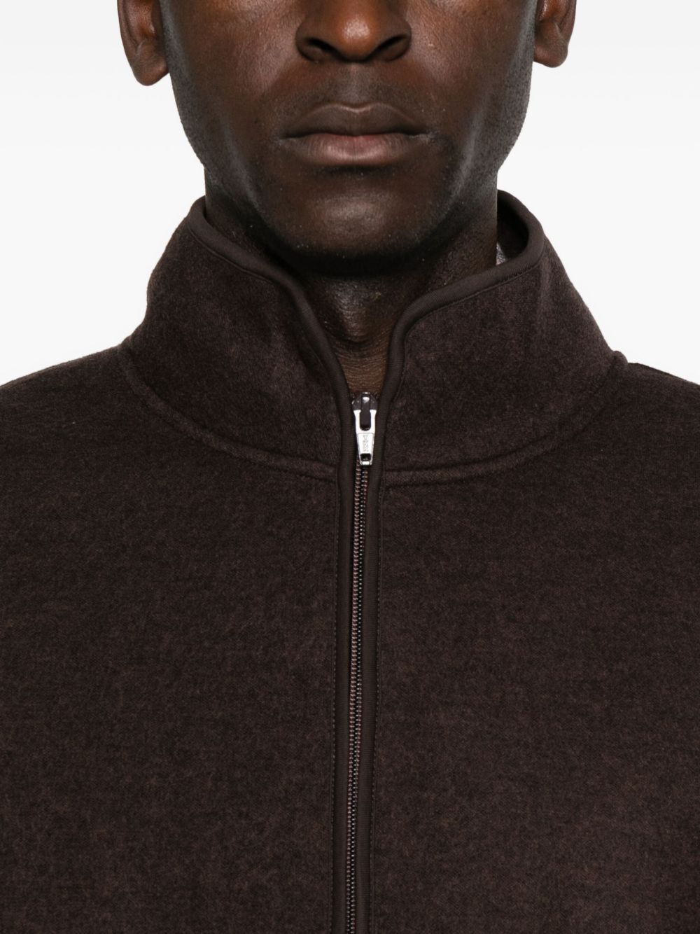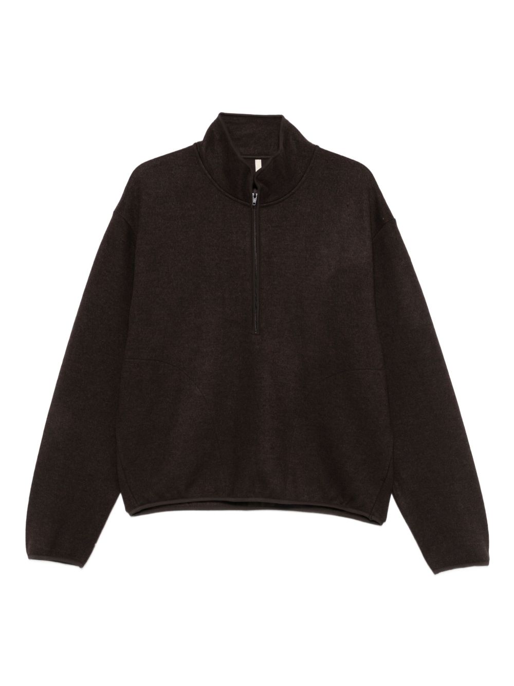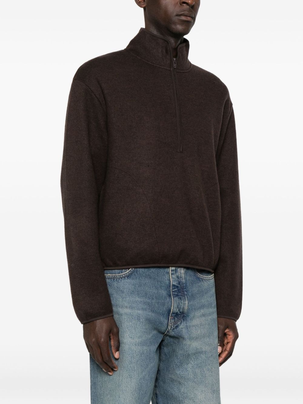 Felpa marrone Wool Half Zip di Sunflwer in lana con mezza zip a spiraler, tasche laterali e bordi rifiniti con nastro.