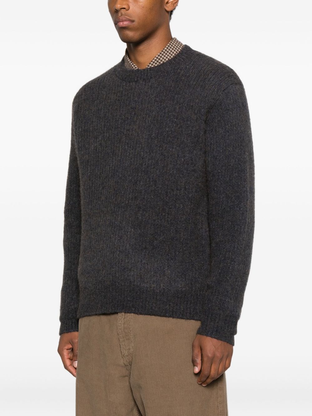 Maglione navy Yak di Sunflower in yak e alpaca con girocollo rinforzato, maglie a coste e orlo dritto.