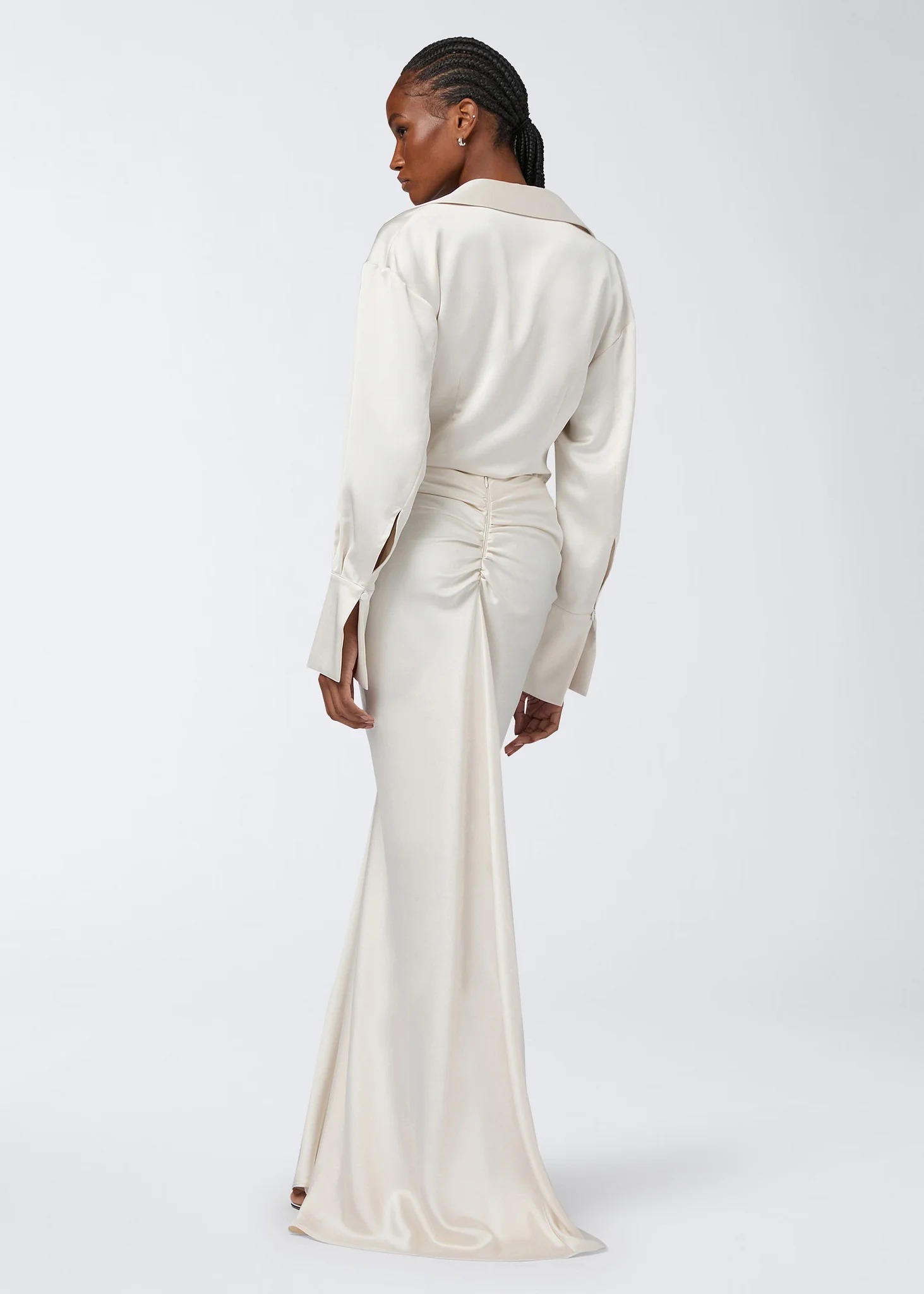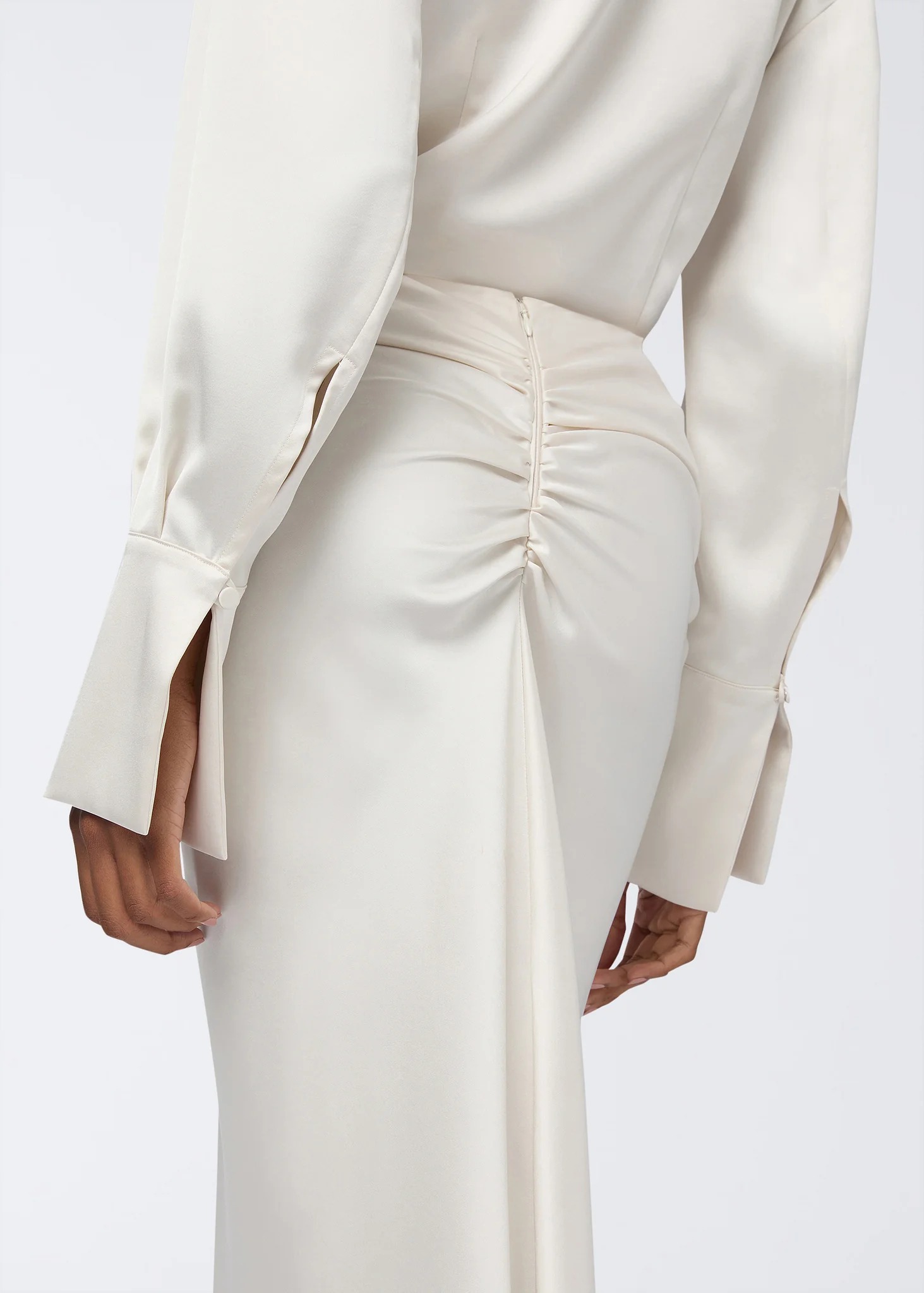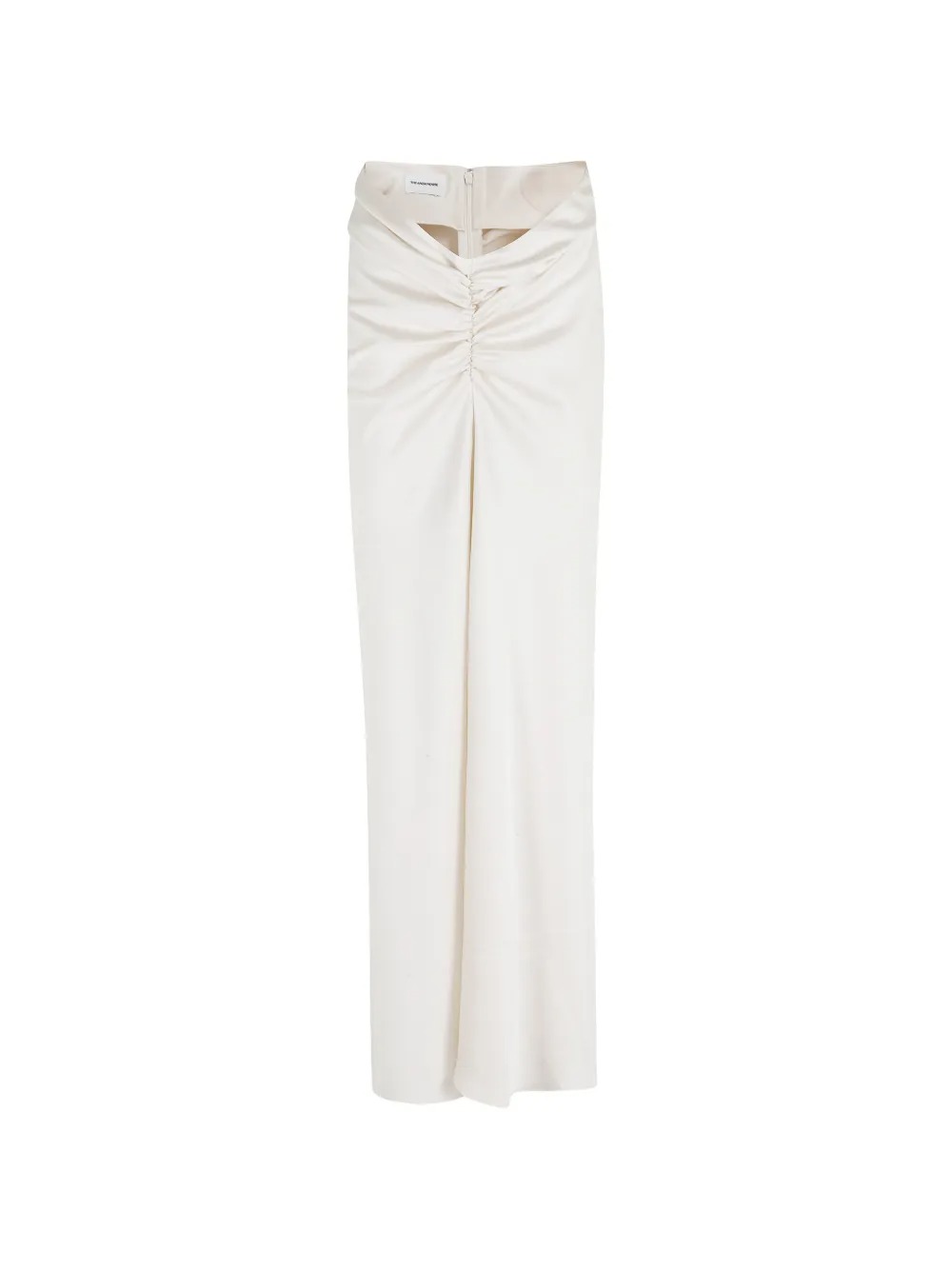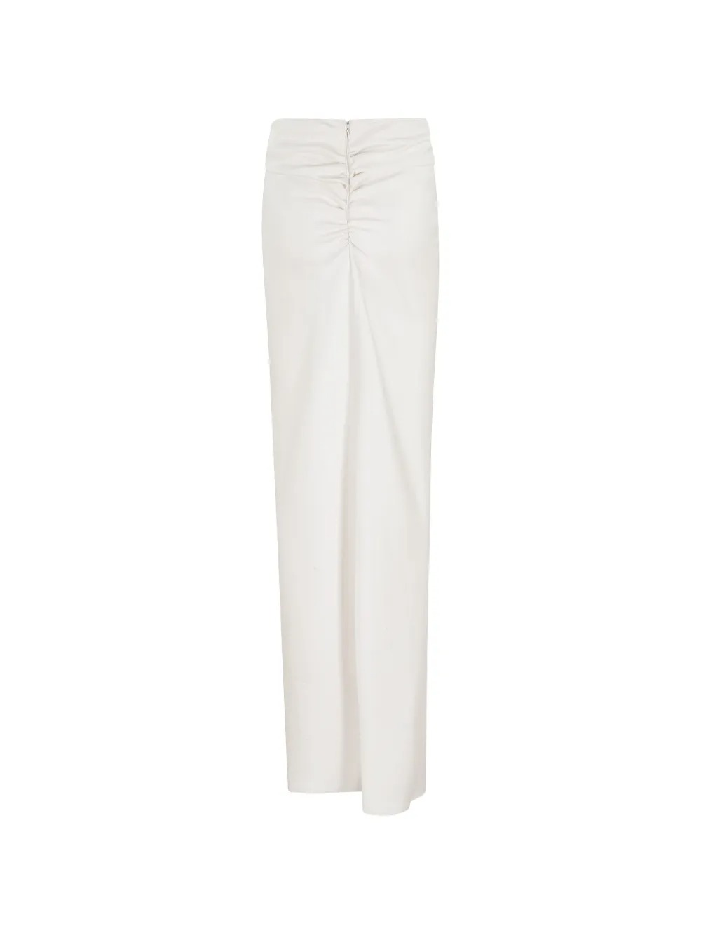 Gonna lunga latte Iris di The Andamane in poliestere con dettaglio con ruches e chiusura con zip.