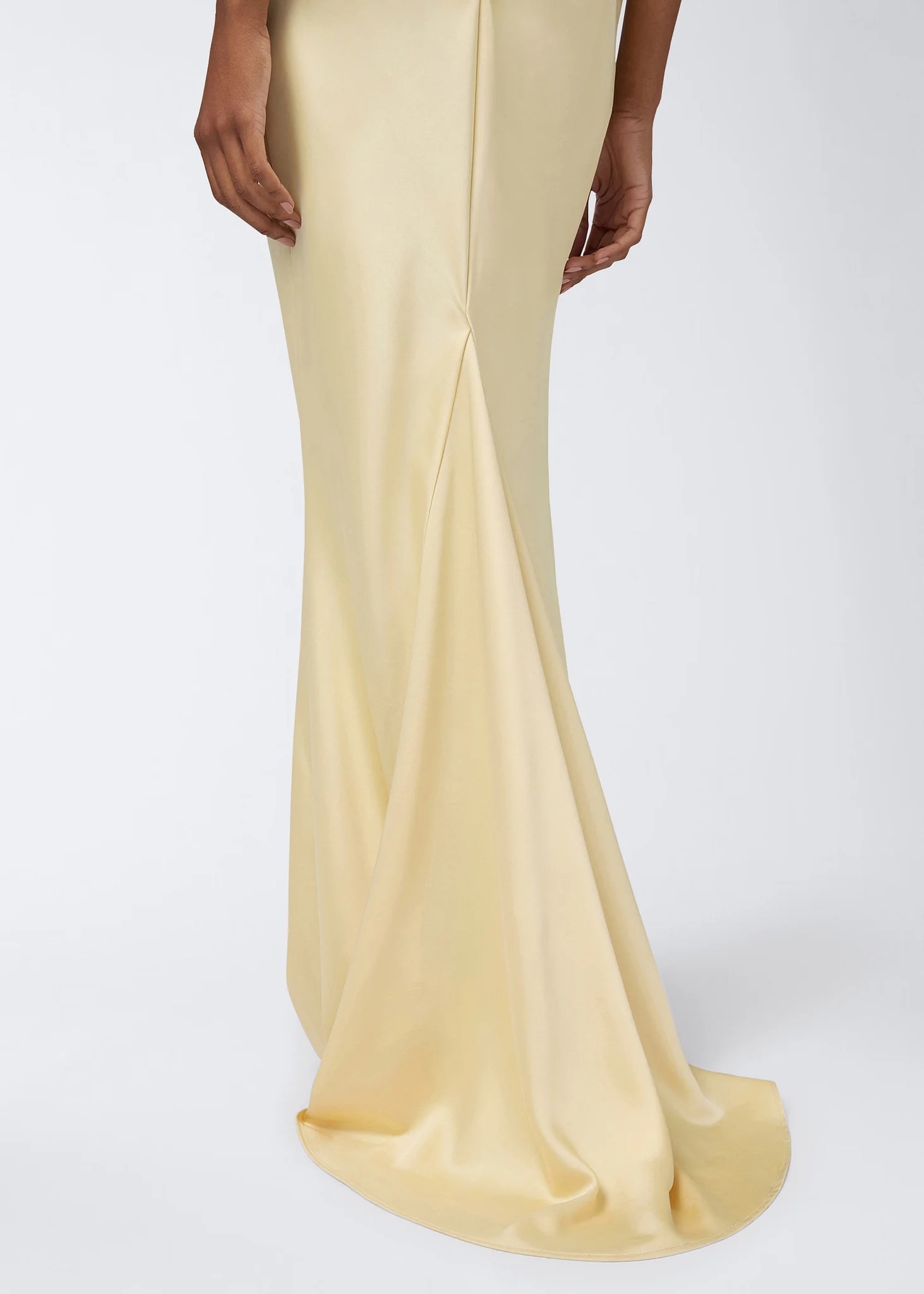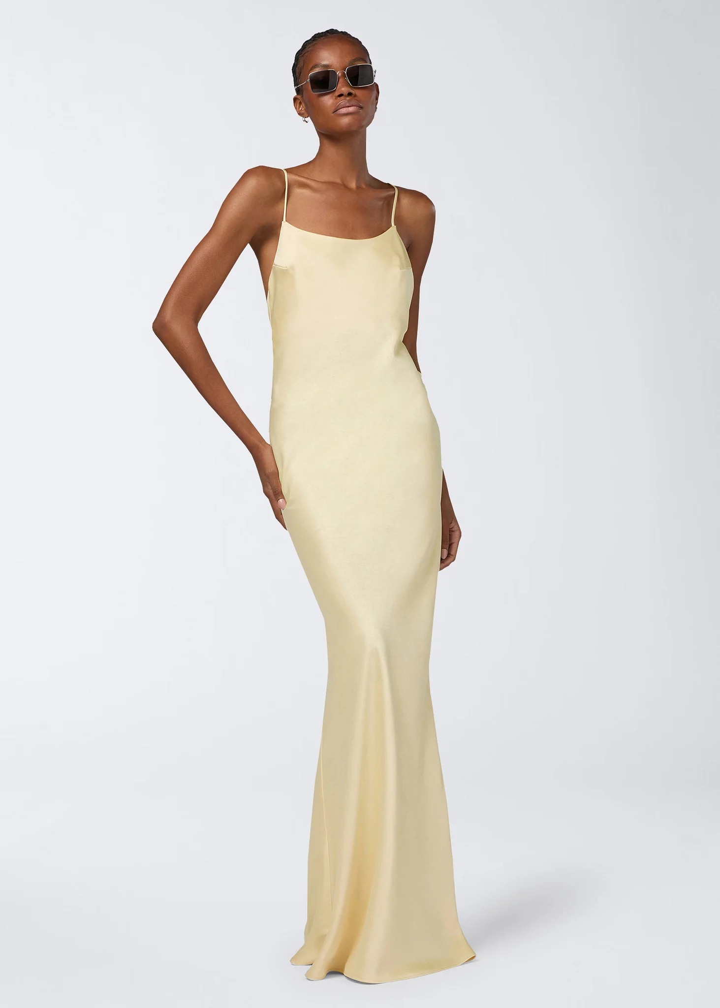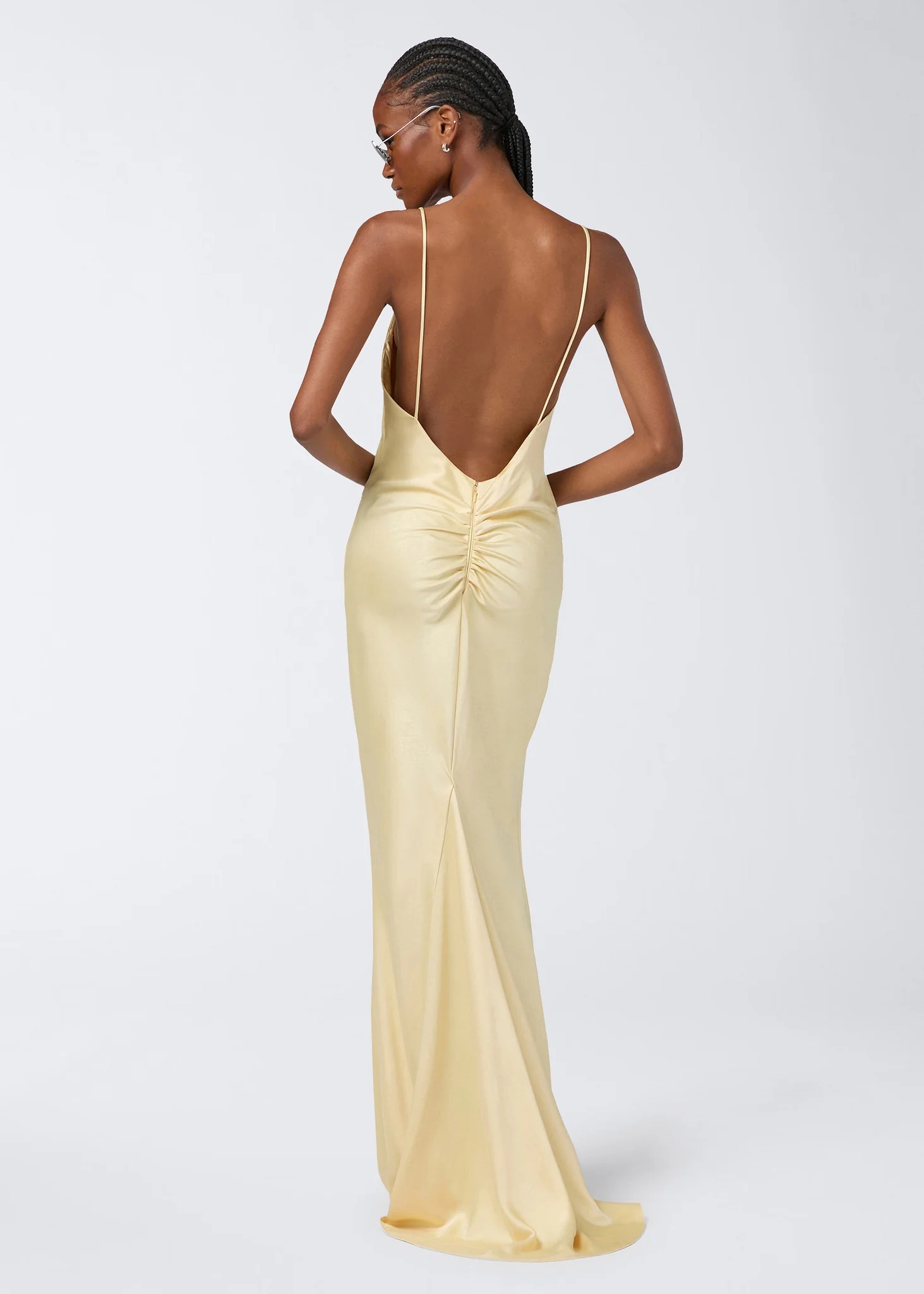 Maxi abito vaniglia Ninfea di The Andamane in poliestere con spalline sottili, schiena scoperta, dettaglio con arricciatura, lunghezza maxi e stile sottoveste.