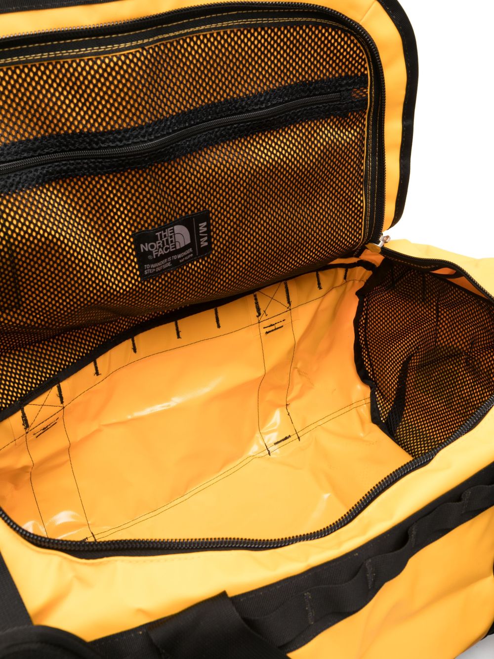 Borsone gialla Base Camp Duffel - M di The North Face in poliestere riciclato con design strutturato, manici superiori, spallacci regolabili, scomparto con separatore interno, tasca in rete e finitura idrorepellente.