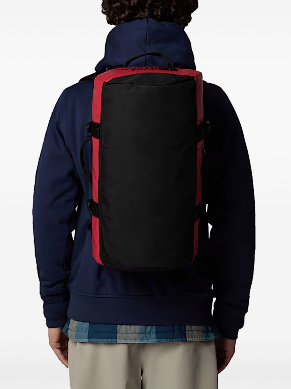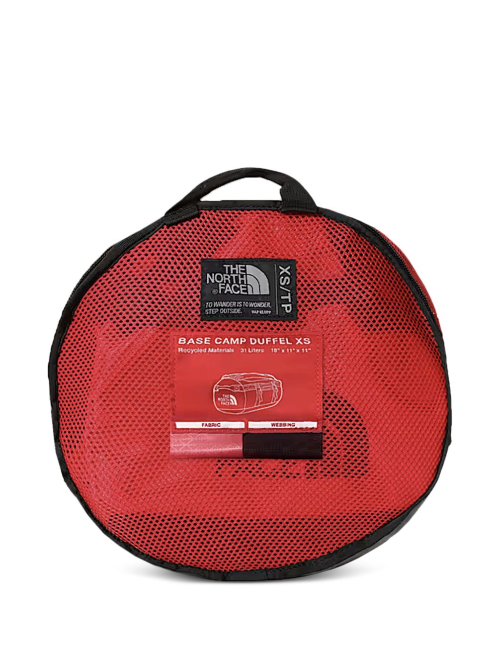 Borsone rosso Base Camp Duffel - XS di The North Face in poliestere riciclato con design strutturato, manici superiori, spallacci regolabili, scomparto con separatore interno, tasca in rete e finitura idrorepellente.