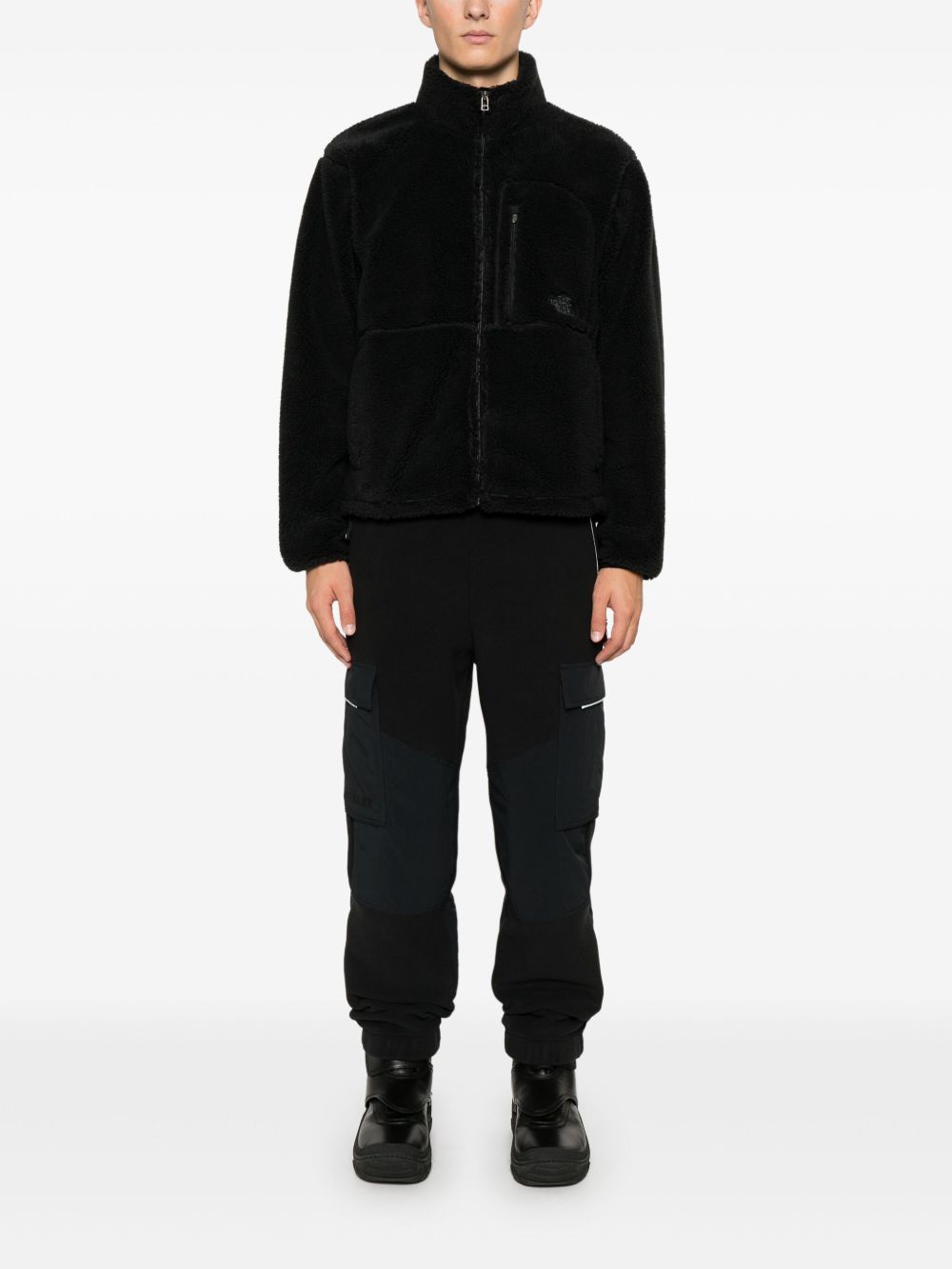 Giacca nera Extreme di the North Face in pile con chiusura con zip, design a inserti e collo alto.