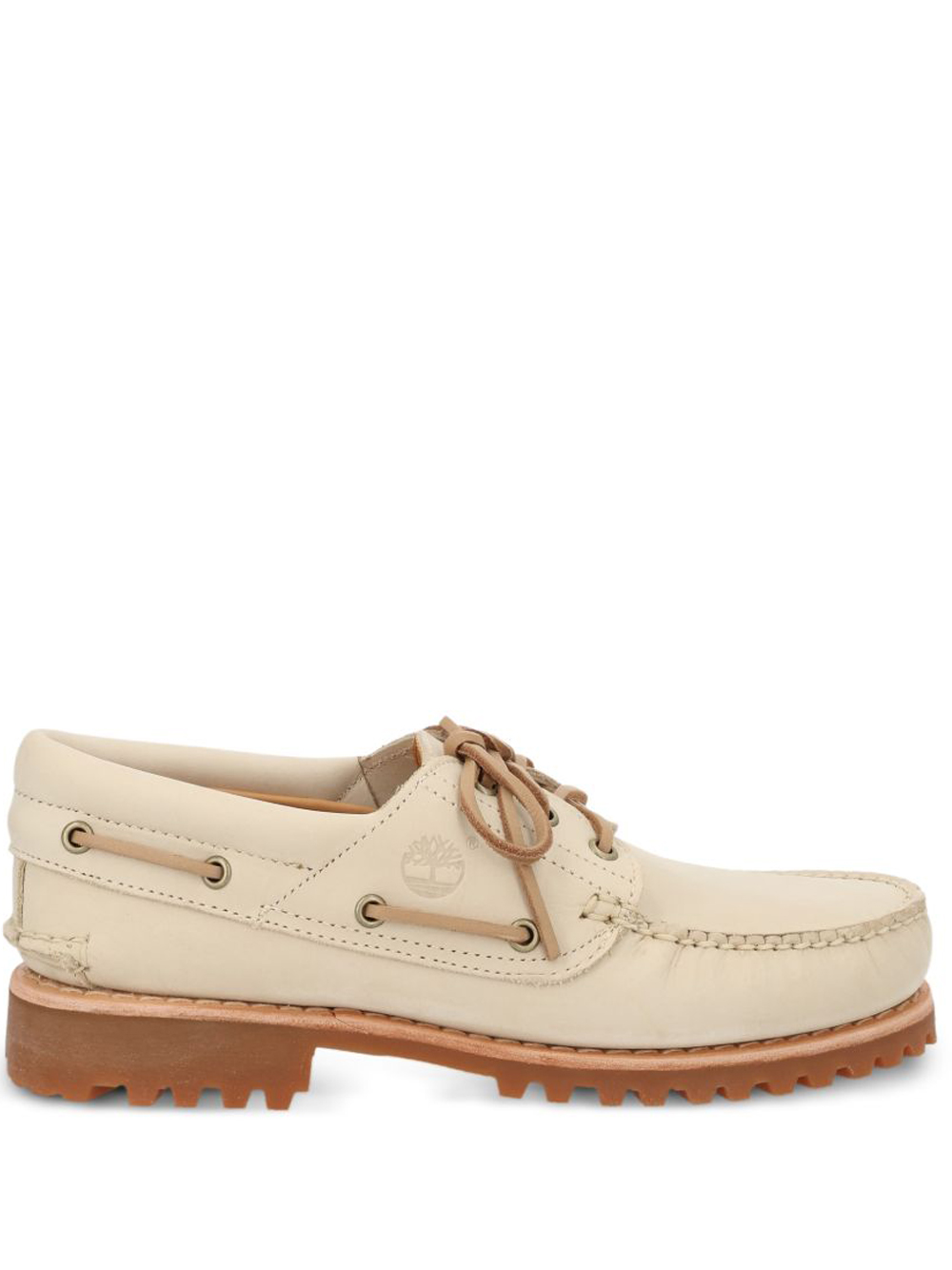 Scarpe stingate beige chiaro Authentic Boat di Timberlad in pelle con chiusura frontale con lacci e suola preformata di supporto in gomma.